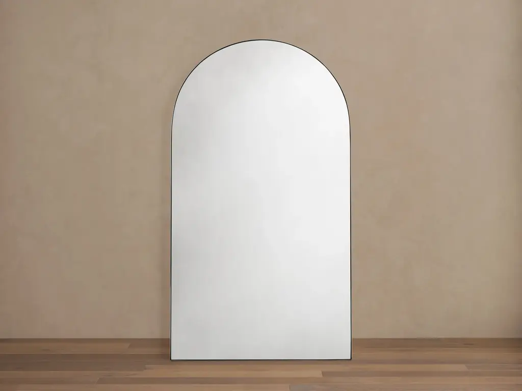 This mirror's arching structure requires no frame to make its impact. Allowing for endless aesthetic opportunity, it has the capacity to provide fashion and function to any interior in the home. With a 40-inch, by 40-inch structure, it holds grandeur in stature which only expands when reflecting its subject.
