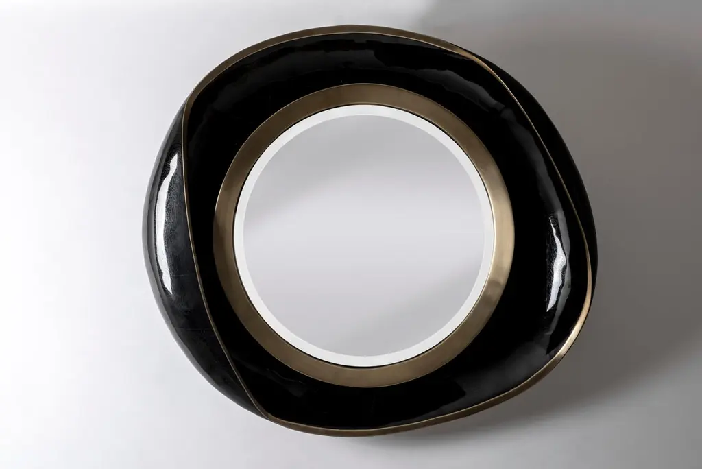 Petal Mirror In Black Shell And Bronze-Patina Brass By R&y Augousti