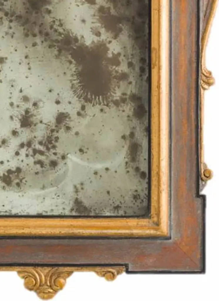 Style is in the details...Simply stunning jewel of a mirror framed with traditional details. The frame by Christopher Guy''s master-carvers are delicately crafted out of solid hardwood with an 14th Century Gold, Tudor Wash & Black Poly hand-painted finish. Lovely accent for any entry, hallway or bedroom. Consider mixing a petite mirror in with a collection of family photos to break up the images and create your own design style.Dimensions: 15"W x 20"H +/-Finish: 14th Century Gold, Tudor Wash & Black PolyMirror: AntiqueNo two are alike!