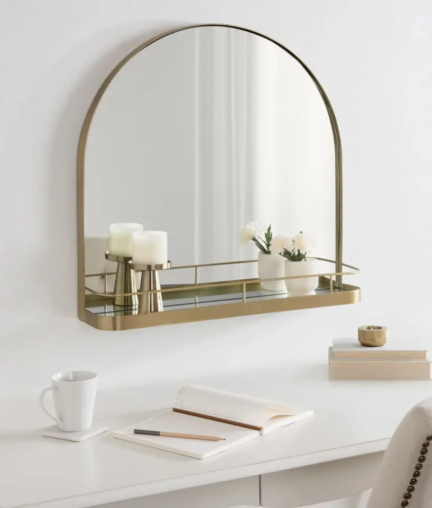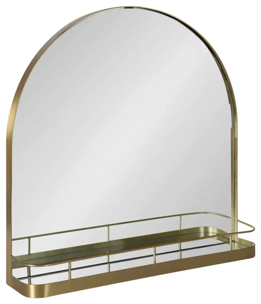 Peyson Framed Arch Mirror With Shelf, Gold 26x26