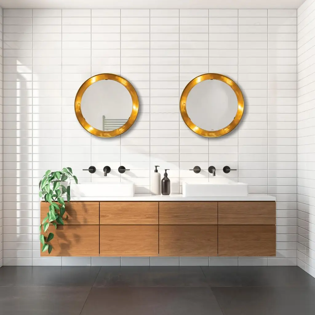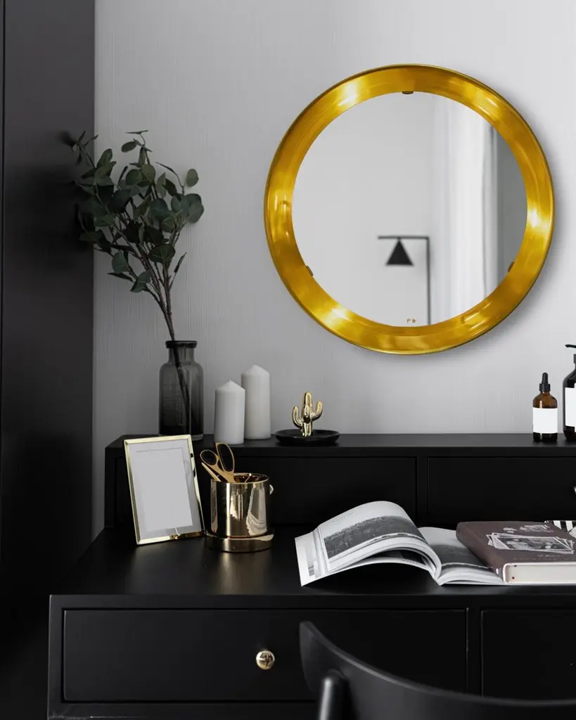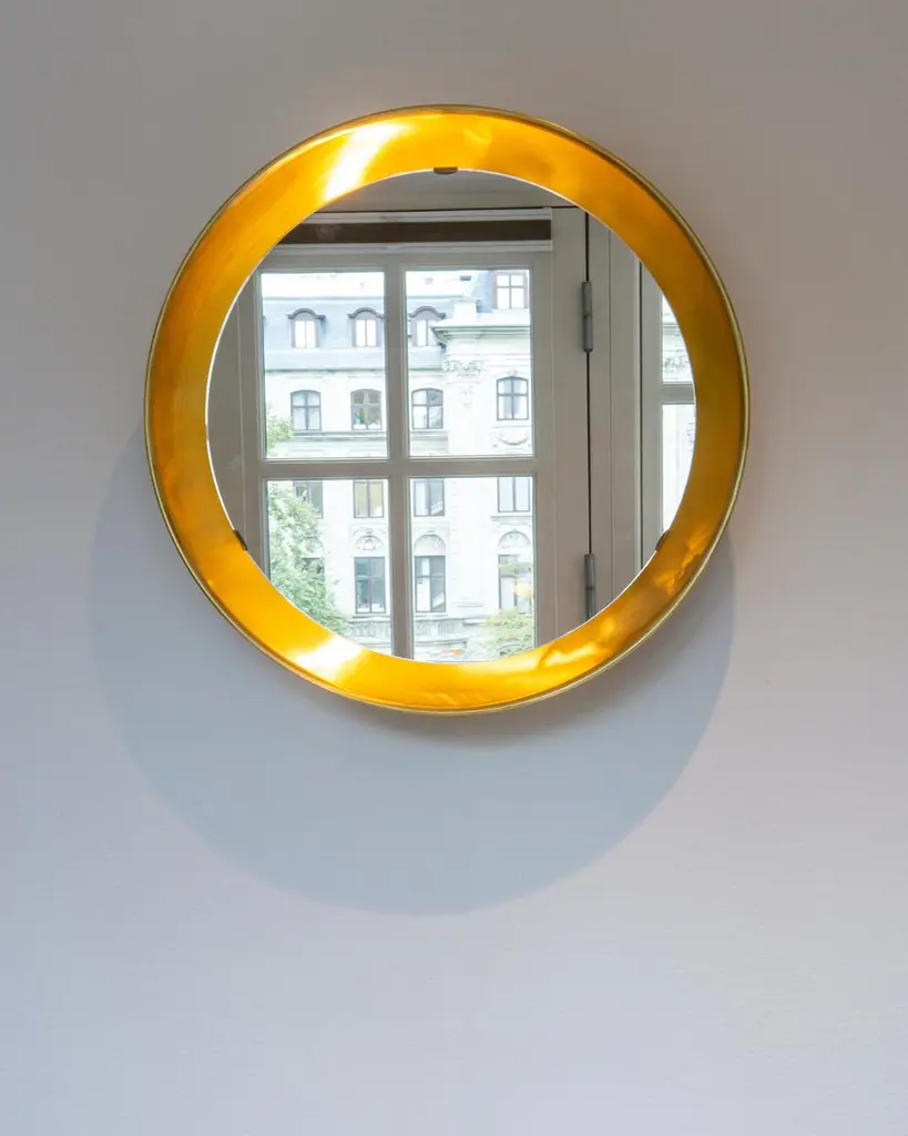 Created in the late 1930s, the PH mirror features backlit illumination that provides a reflection that is free from shadows and glare. PH’s wall mounted mirror design fits harmoniously with the widest variety of interior settings – from the grandest of hallways to the smallest of bathrooms – and provides a reflection of superior clarity regardless of its environment.The PH Mirror is available in three sizes on the screen: Ø360mm, Ø500mm or Ø700mm. The back of the screen is available in 5 different colours also known from the PH lamps: black, white, yellow, green or red.The display can also be supplied in three different metals: aluminum, brass or copper.The illuminated PH mirror can be connected directly in the existing electrical installations.The PH Mirror always comes with drawstring and with the elegant signature of Poul Henningsen engraved in the glass of the mirror.