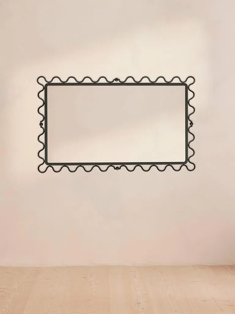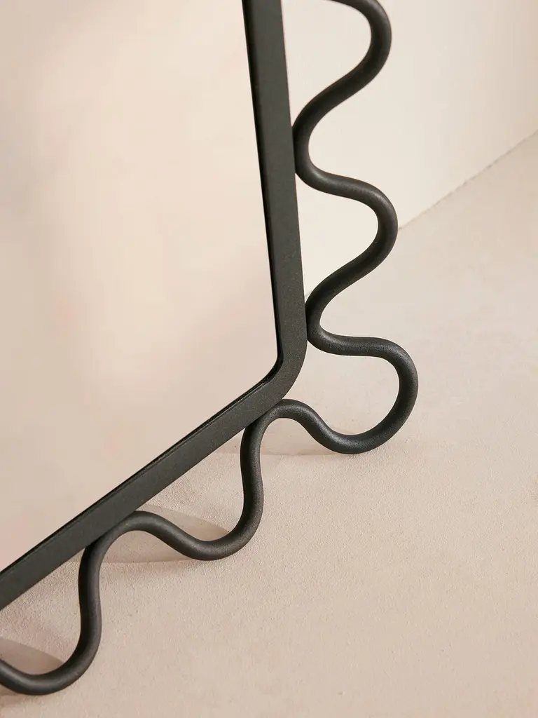 A mix of oversized silhouettes and detailed frames adds a fresh look to your interiors, as with our tall Pia mirror. Designed to accent your space, it features a sculptural wave border in a matte black metal. Inspired by Soho House Paris, hang either portrait or landscape in any room of the home.