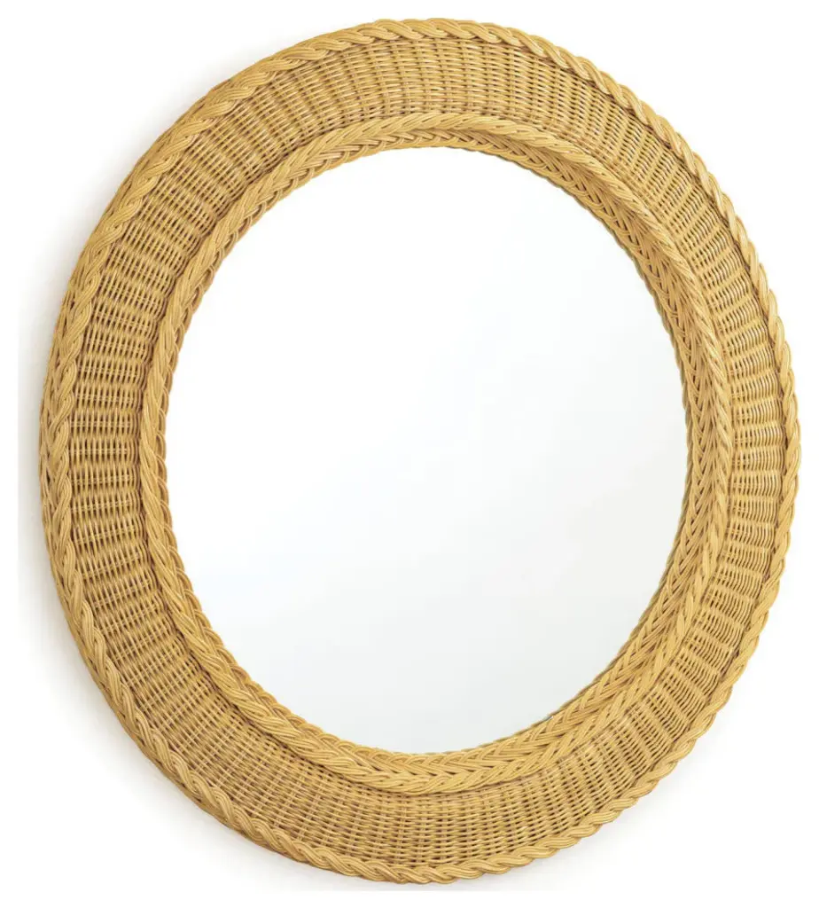The Pierre Mirror has a beautiful, round basket-weave frame. Its wheat-colored frame has a coastal cottage charm and an organic appeal that would work well in a number of traditional settings. Add this mirror to a bathroom, powder room, in an entryway or bedroom.