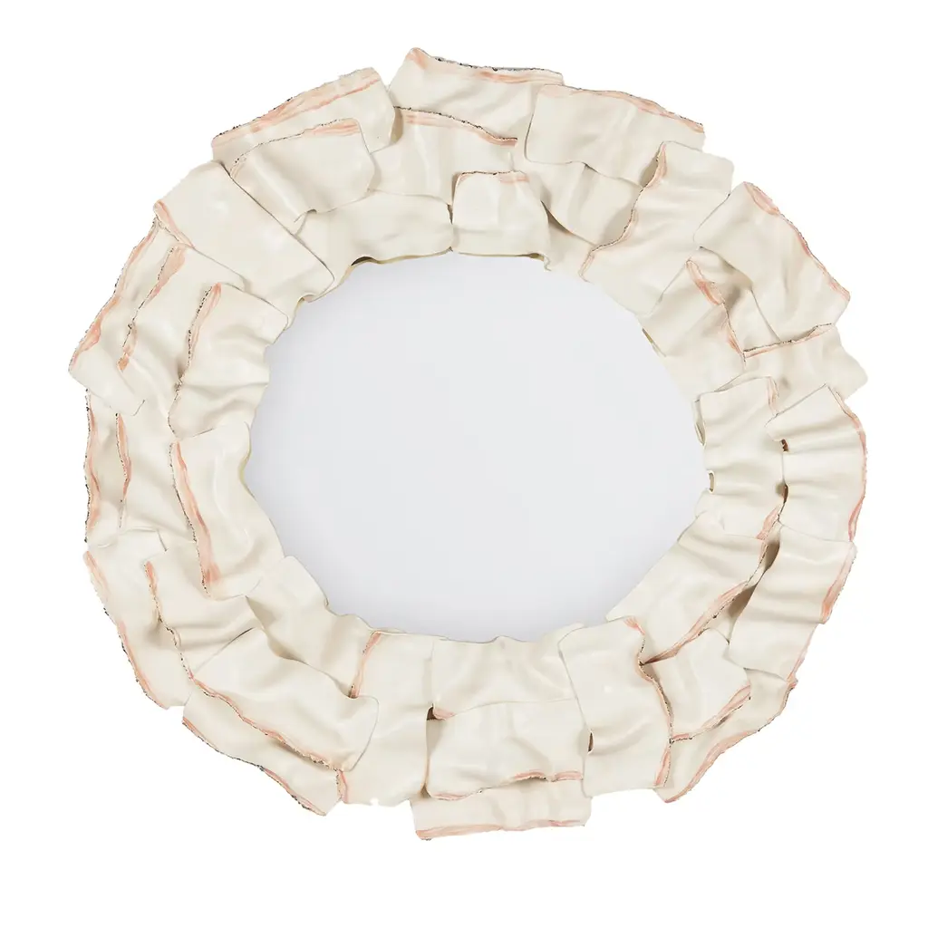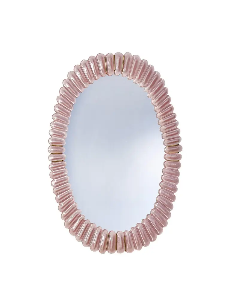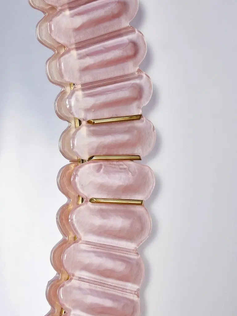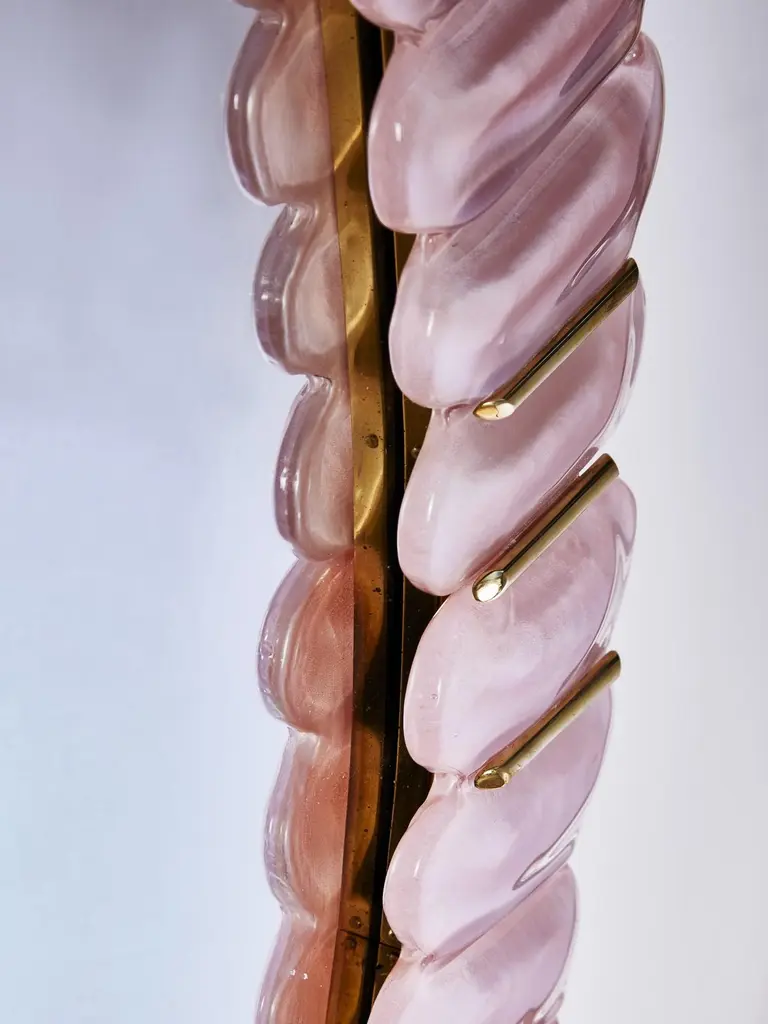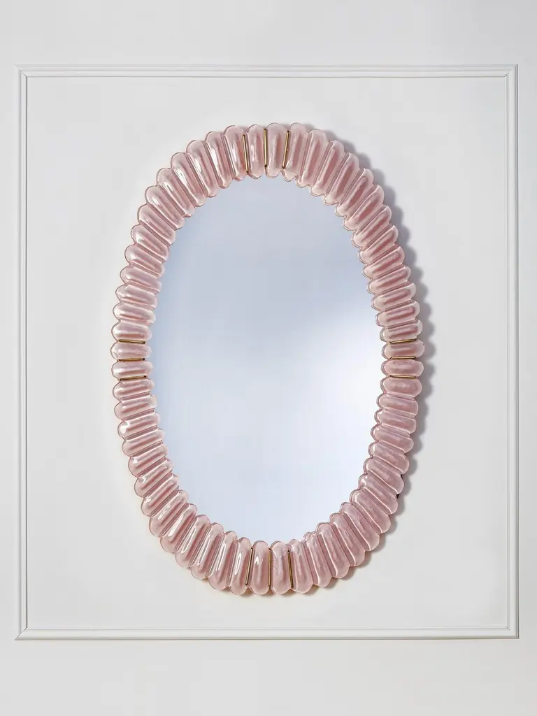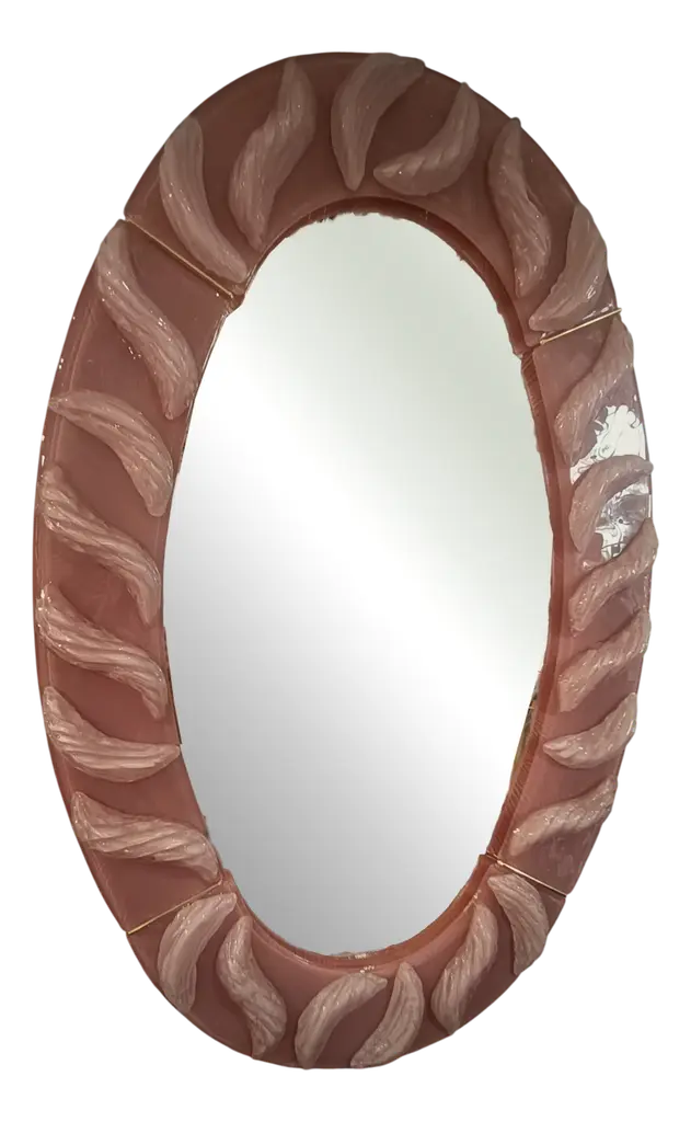 Oval mirror with frame in sculpted Murano glass and brass inlays.Creation by Studio Glustin.