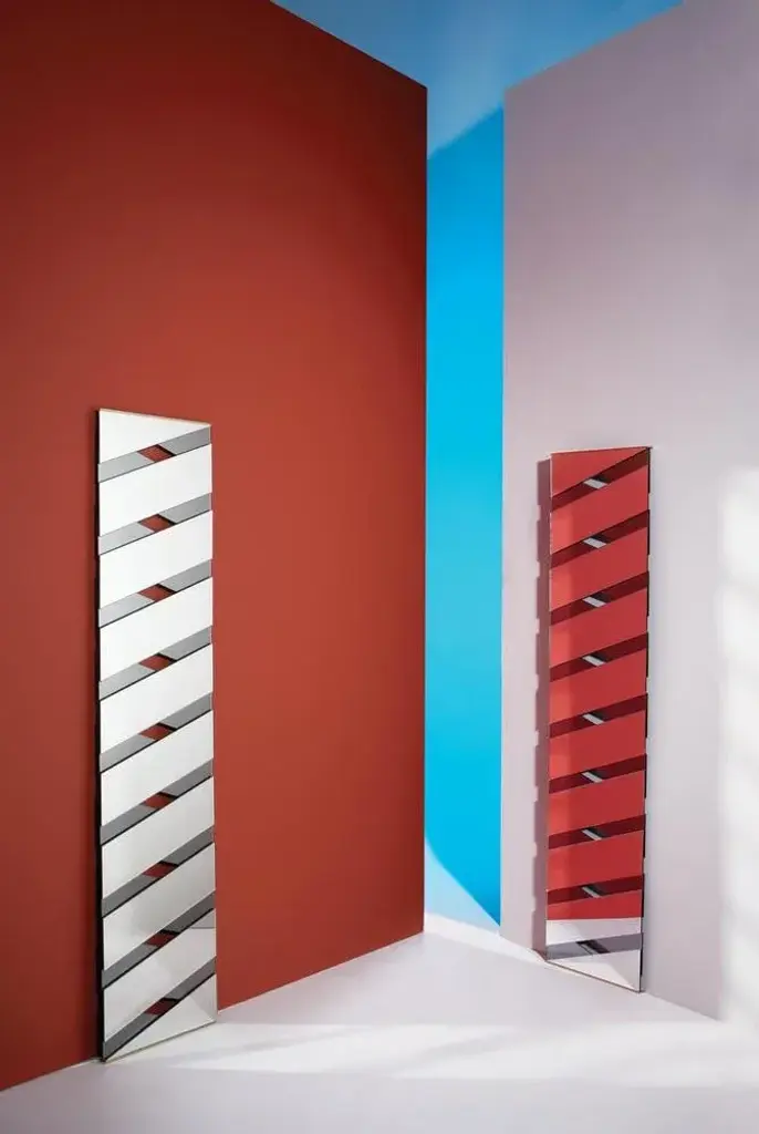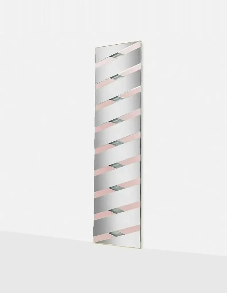 Set of 2 pink twill mirrors by Mason Editions Dimensions: 45 × 3 × 171 cm Materials: glass Colours: pink, sage green, smoke grey A clear reference to the weaving motif: the rectangular Twill mirror is a tribute to the exclusive world of men’s tailoring. The design of the glass reinterprets the iconic diagonal weave, created by weaving the threads to form a 45° oriented structure, originally used to give unprecedented shine to plain-coloured fabrics. A full-length mirror that can be hung on or leant against a wall. These iconic interlocking sections of glass are available in three subtle coloured variations: smoke grey, sage green and pink. A truly luxurious statement piece for any modern space. Mason Editions is an Italian company specialized in the production of design furniture, lighting solutions and accent pieces.