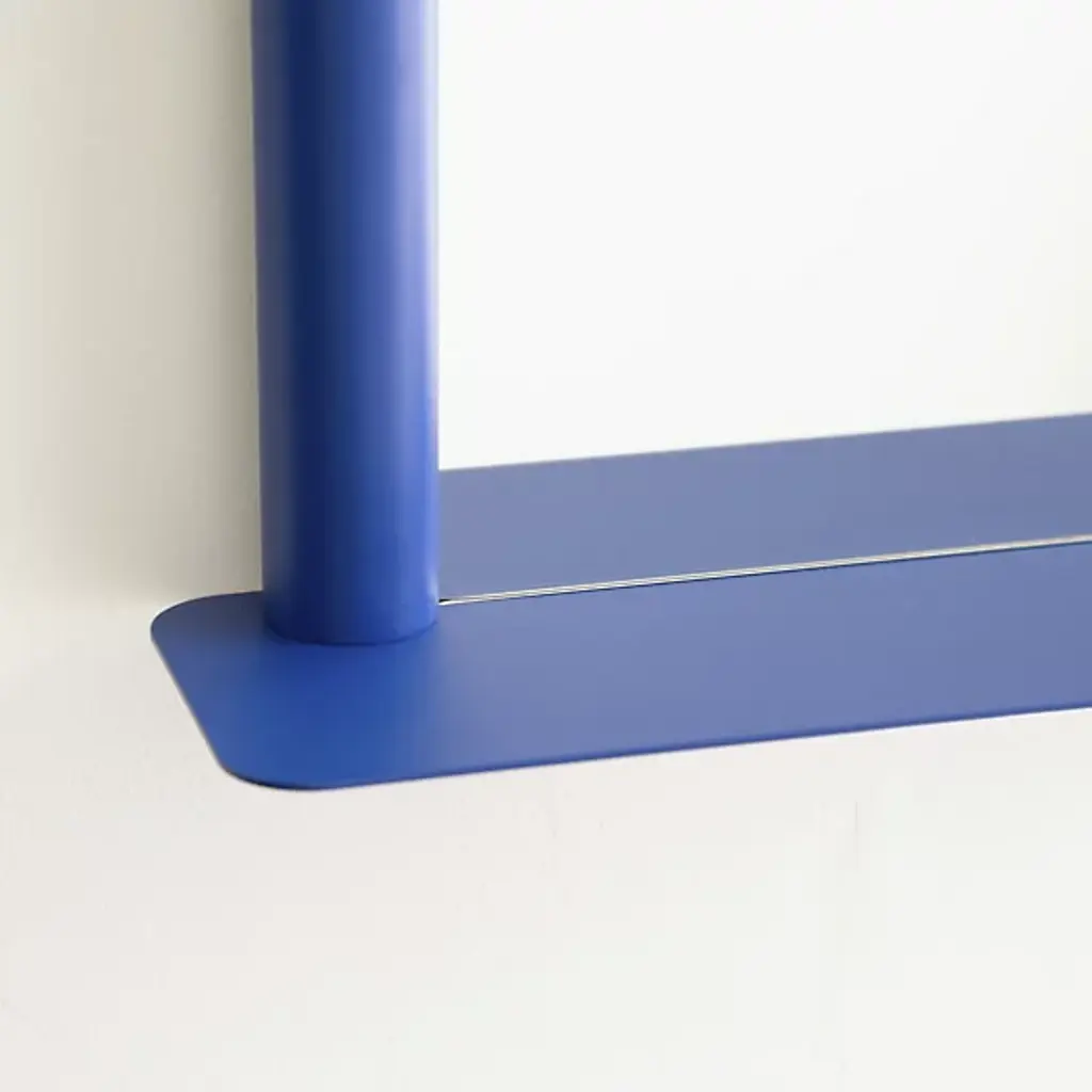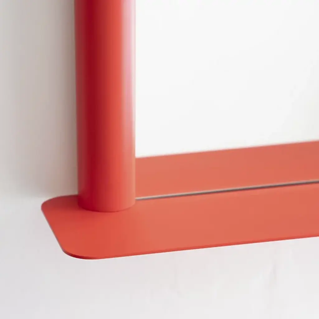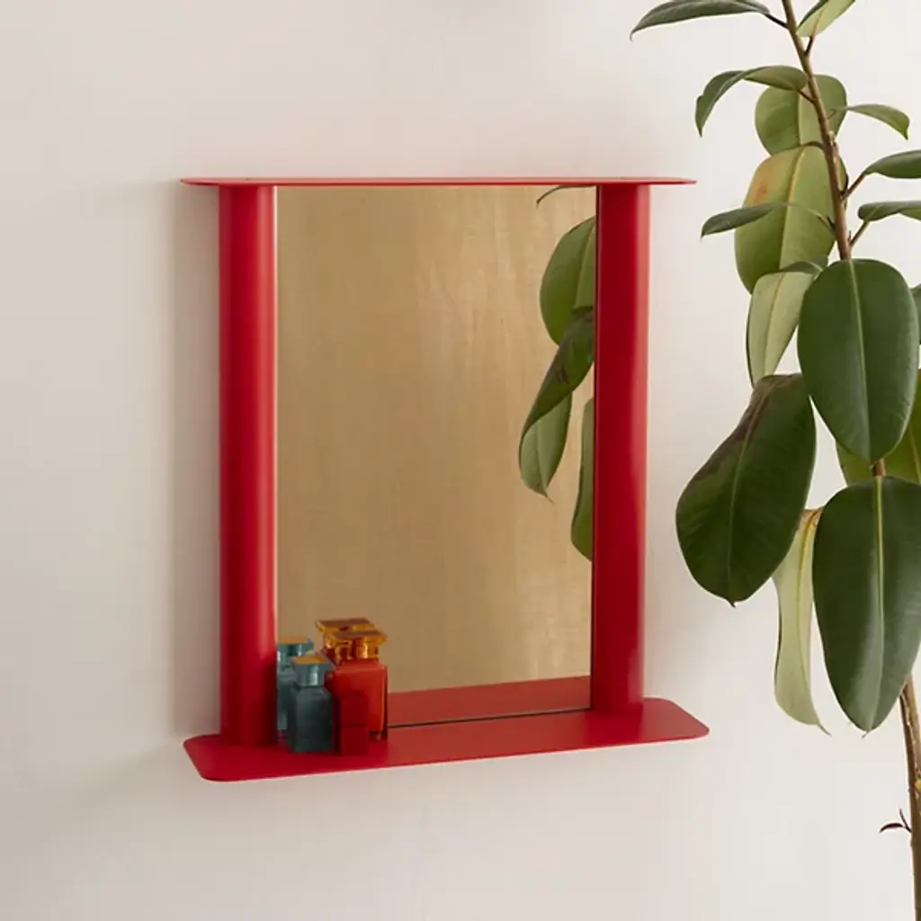 The Pipeline Mirror from Raawii keeps home decor simple, with a functional, visually bold design. Created by Nicholai Wiig-Hansen, this wall-mounted piece features a rectangular mirror bordered by two vertical pipe columns, all made from recycled aluminum. A small integrated shelf provides a convenient spot for everyday items, adding utility to an otherwise direct design. With its clean geometry and intense colors, it opens up smaller spaces, making it an eye-catching addition to walls.