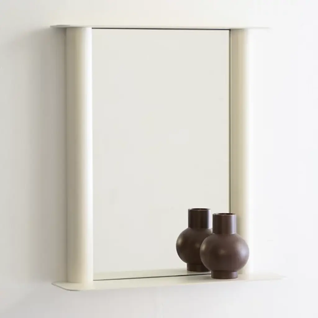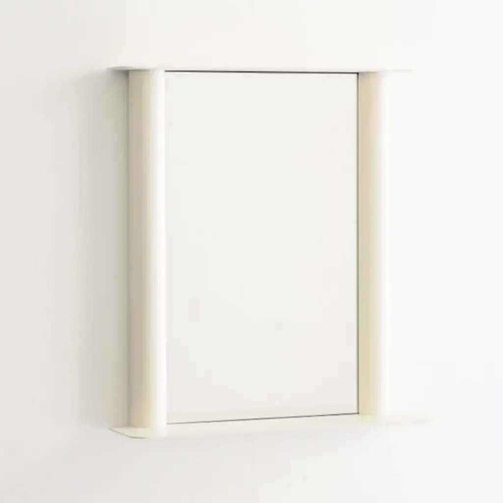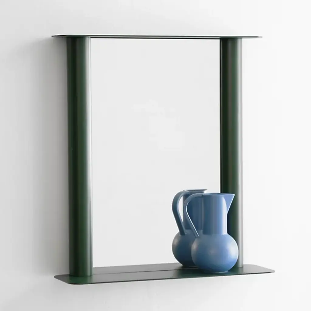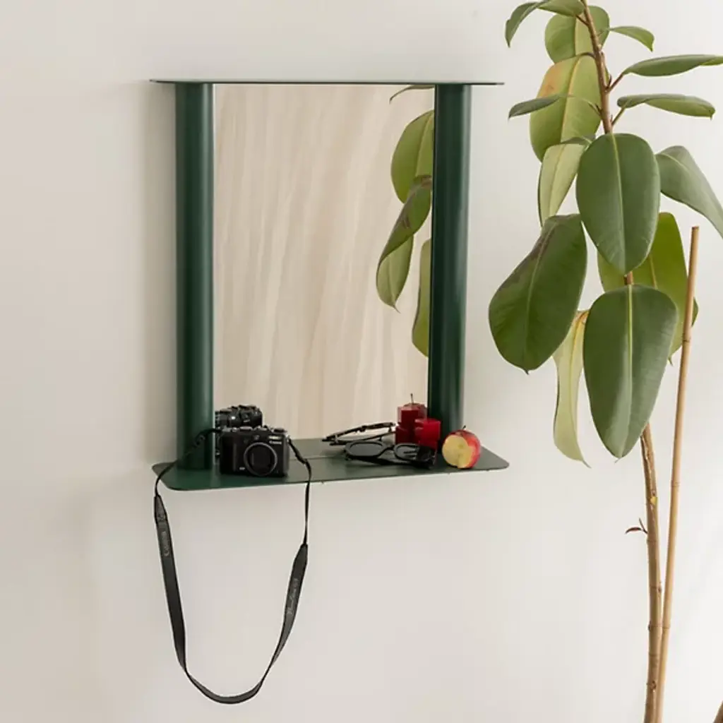 The Pipeline Mirror from Raawii keeps home decor simple, with a functional, visually bold design. Created by Nicholai Wiig-Hansen, this wall-mounted piece features a rectangular mirror bordered by two vertical pipe columns, all made from recycled aluminum. A small integrated shelf provides a convenient spot for everyday items, adding utility to an otherwise direct design. With its clean geometry and intense colors, it opens up smaller spaces, making it an eye-catching addition to walls.