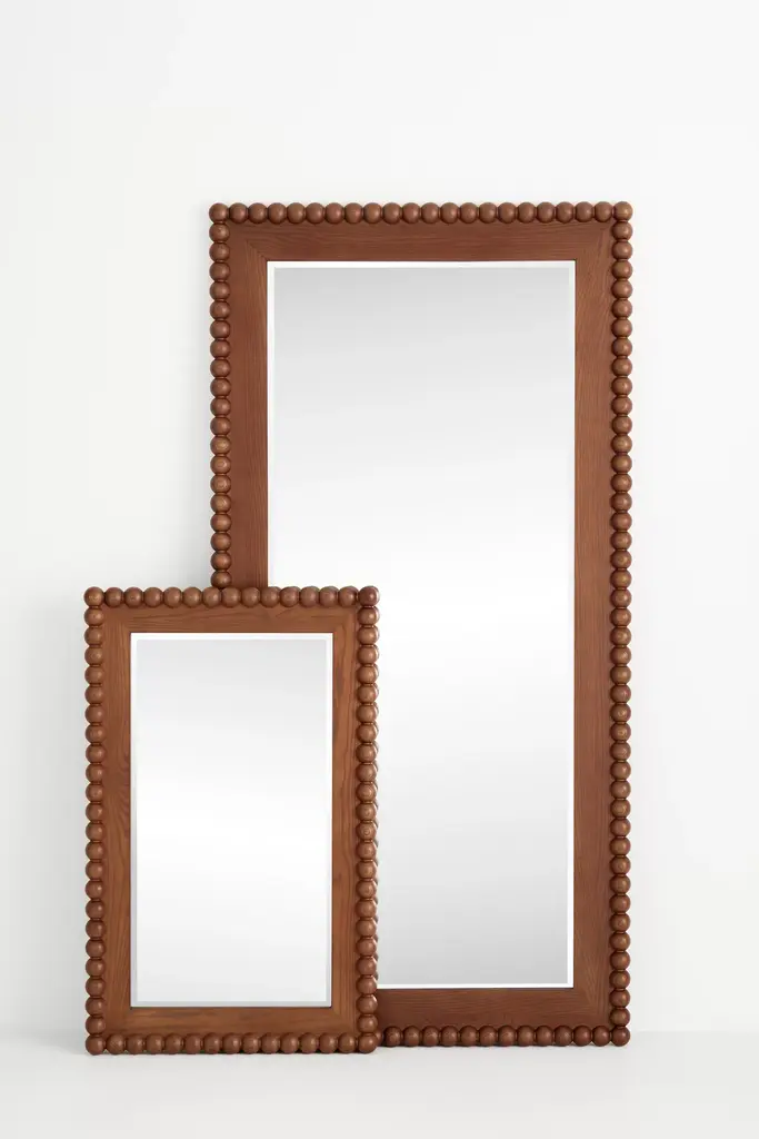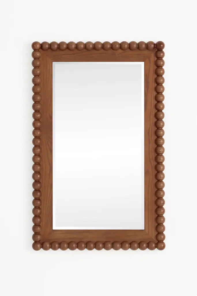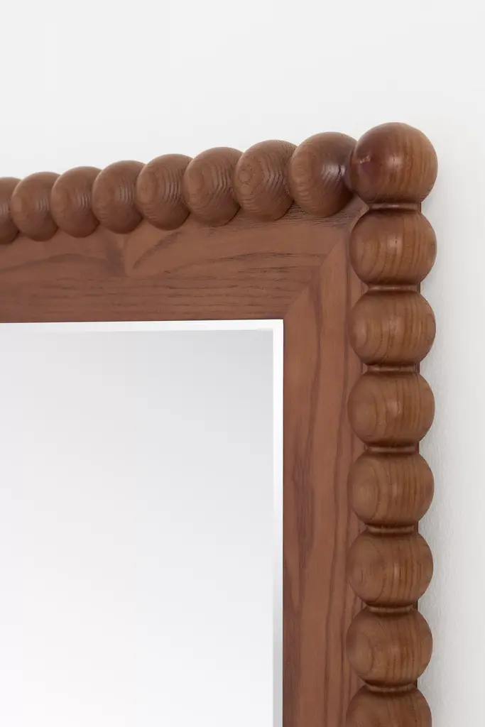 Our take on Bobbin design, the Pippa Wood Mirror flaunts a frame of oversized spheres and a sleek rectangular silhouette.