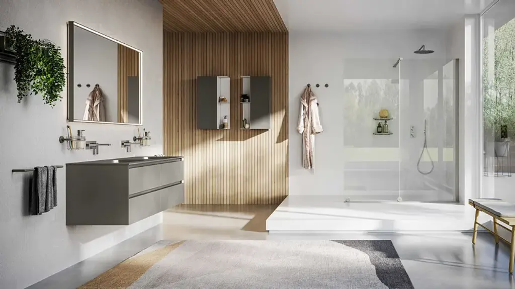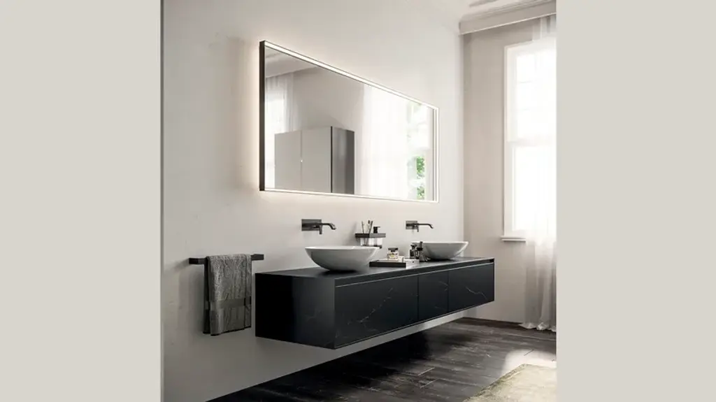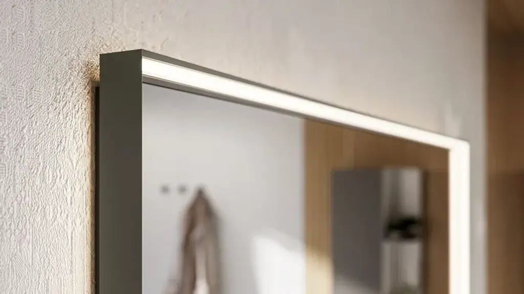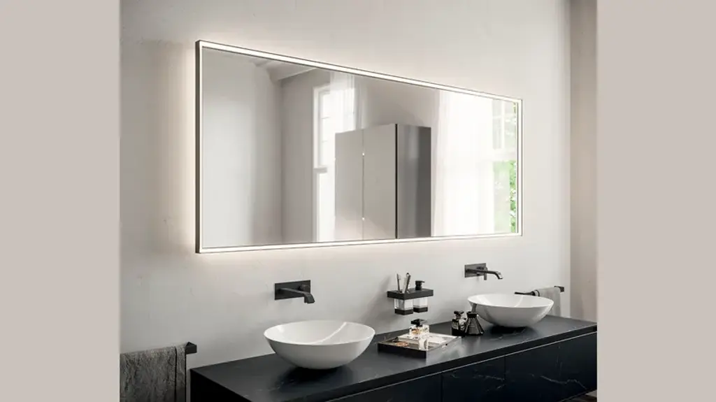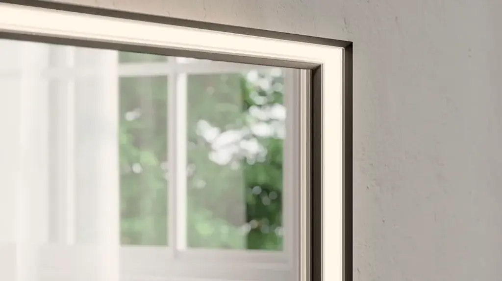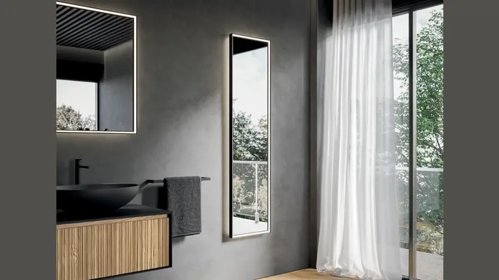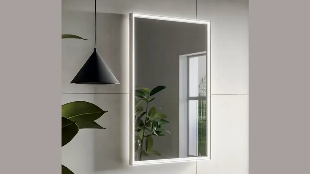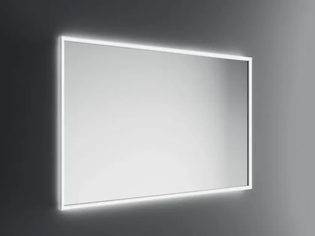 Pirano + is a mirror with a painted aluminum frame. Glass thickness 4mm. With front internal frame and ambient light. Light color adjustment 2700-6000k.