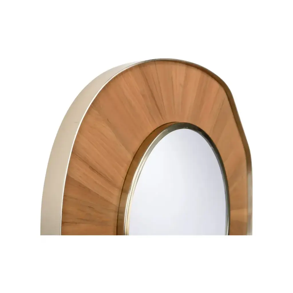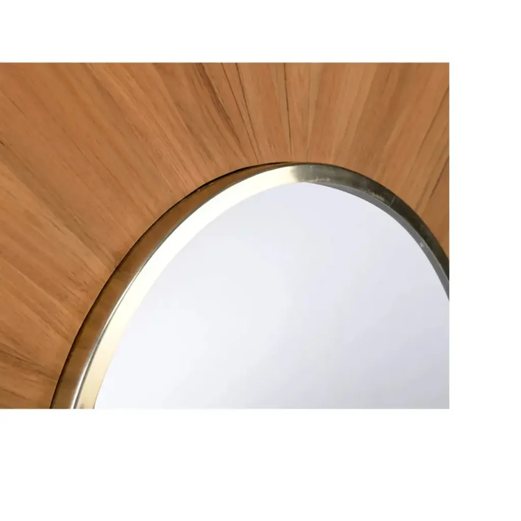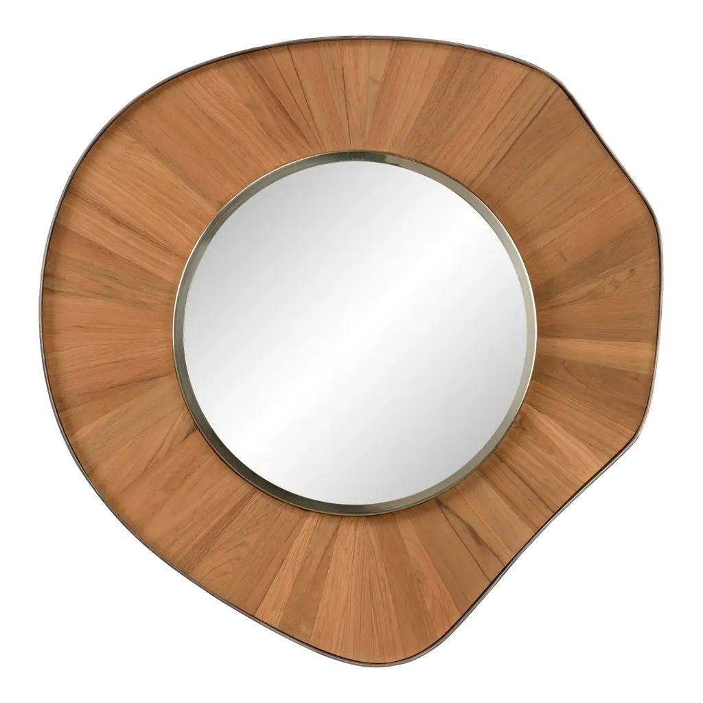 Our Pith Mirror is intriguing to the eye with the combination of its natural materials and organic shape. The soft curves of the rich teak wood and brushed nickel finish are ideal for foyers and other living areas.