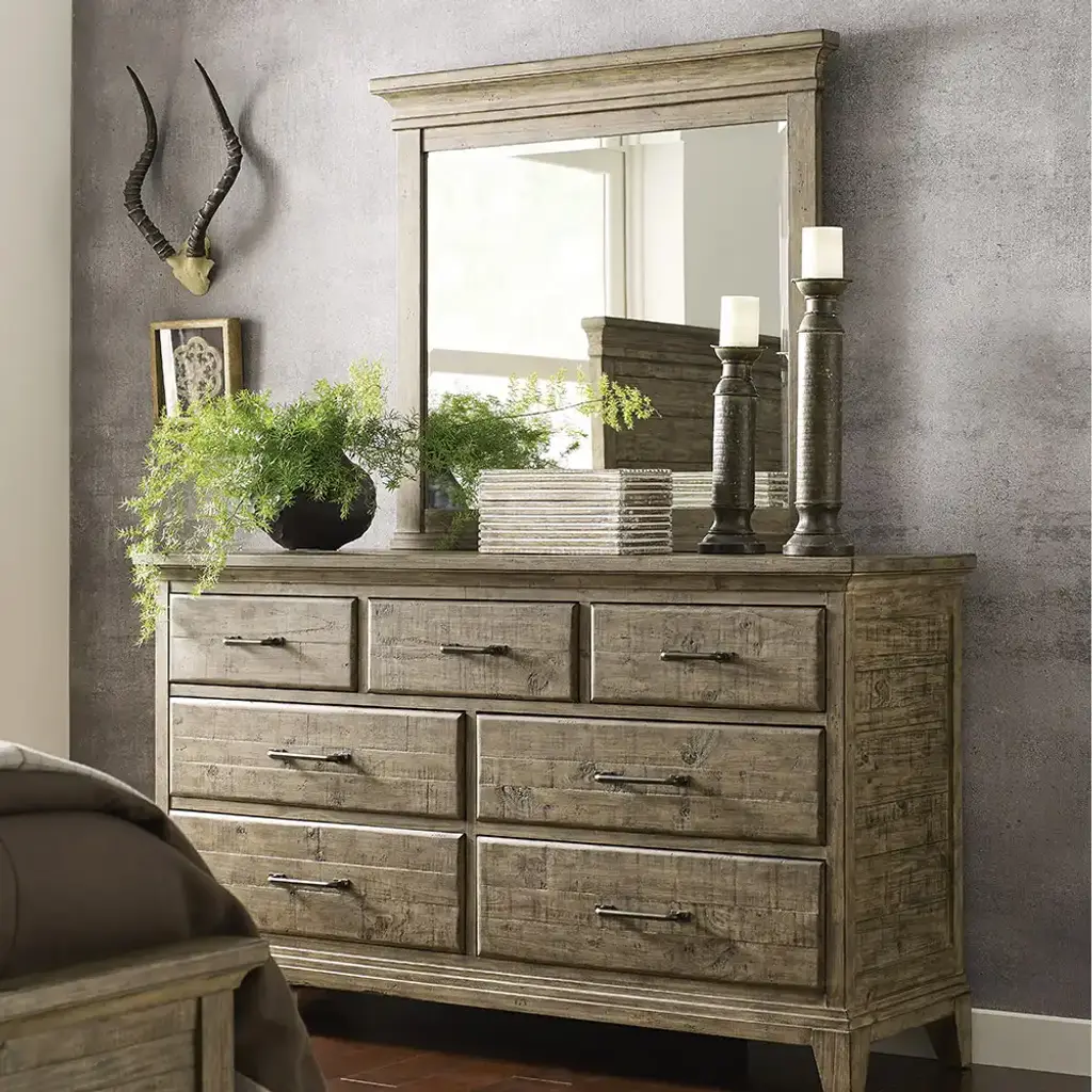 The Jessup Mirror from the Plank Road Collection offers a perfect blend of rustic charm and refined elegance. Crafted with genuine New Zealand Pine, this mirror showcases the natural beauty of solid wood construction, each piece telling its own story through unique grain patterns and textures. The frame's sturdy build ensures durability, while its design complements both traditional and contemporary interiors. At its heart, a beveled glass mirror adds a touch of sophistication, creating depth and enhancing the reflection quality. Whether placed in an entryway, bedroom, or living area, the Jessup Mirror serves as both a functional piece and a striking focal point. Its versatile style effortlessly ties together various design elements, making it a timeless addition to any home seeking to balance rustic warmth with polished aesthetics.