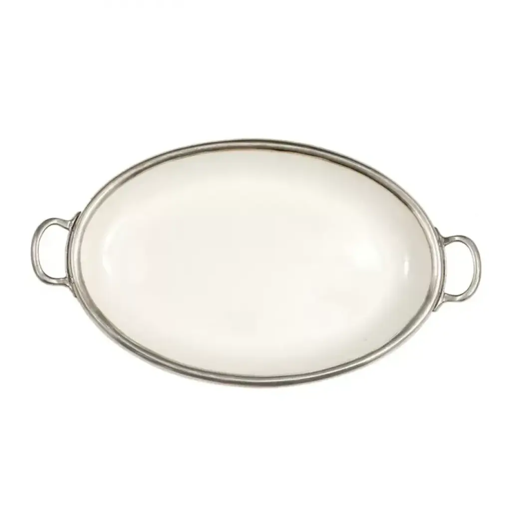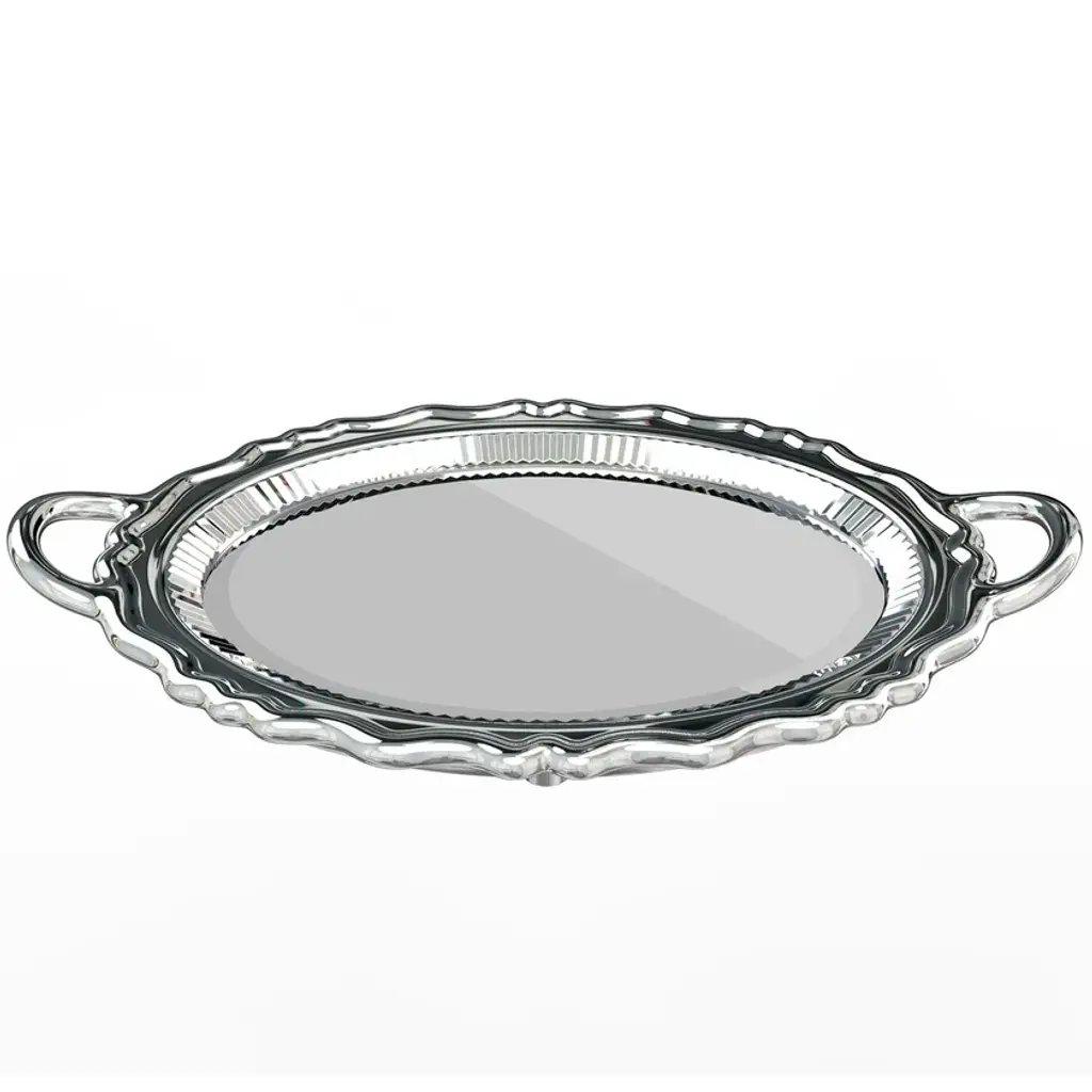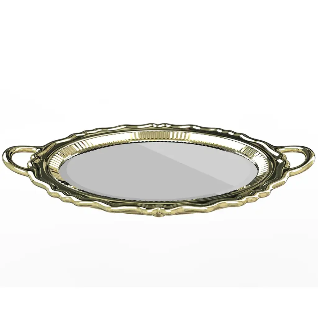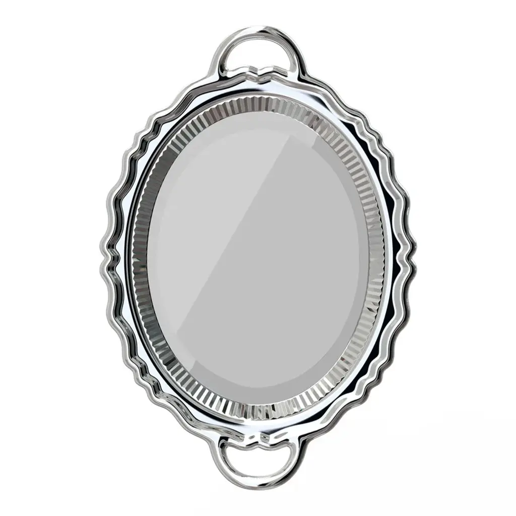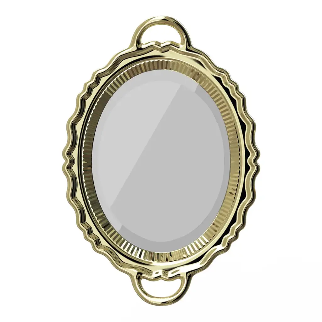 “A precious 17th century silver tray, historically used as a status symbol, revives as a plastic rotation moulded mirror. Although Miroir can be seen as 21st century silverware, the quality, cra smanship and detailing is still as re ned as ever before.” – Job SmeetsMIROIR - Oval framed mirror designed by Studio Job.Dimensions: 110 x 76,5 x h 10,5 cm Weight: 4,5 kg Materials: PE-Polyethylene Colors: gold, silver, white, black