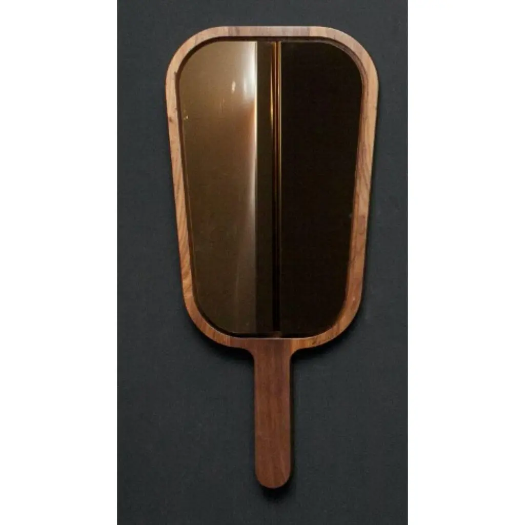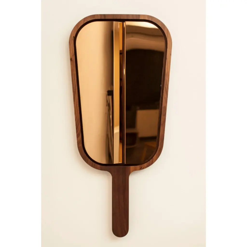 Please Don't Tell Mom mirror 2 by Marc Dibeh2015Materials: American walnut, polished stainless steel, rose gold finishDimensions: W 48 x H 90 x D 4 cm This happy accident, caused by coincidently breaking a mirror during an experiment, lead to create the series titled ‘Please Don’t Tell Mom’.Consisting of five mirrors, broken accordingly and elevated by angles to form a 3D shape, explains the meaning behind the title of the series.The intention is for the viewer to have broken and distorted reflections, or more so, reflections of several angles.Beirut based designer Marc Dibeh narrates his cultural environment through compelling interiors and products.His studio’s philosophy revolves around storytelling and how to make things timeless and simple.Dibeh’s universe is not far from planet earth but has the power to make you forget you’re in it. His methods are based on wit or sharpness of ideas. Sometimes both.Since the beginning of his career in 2009, Dibeh has been commissioned by Galleries all over the globe. The most recent being Gallerie Bensimon (Paris), Seeds Gallery (London), Artfactum (Beirut) and Joy Mardini (Beirut).