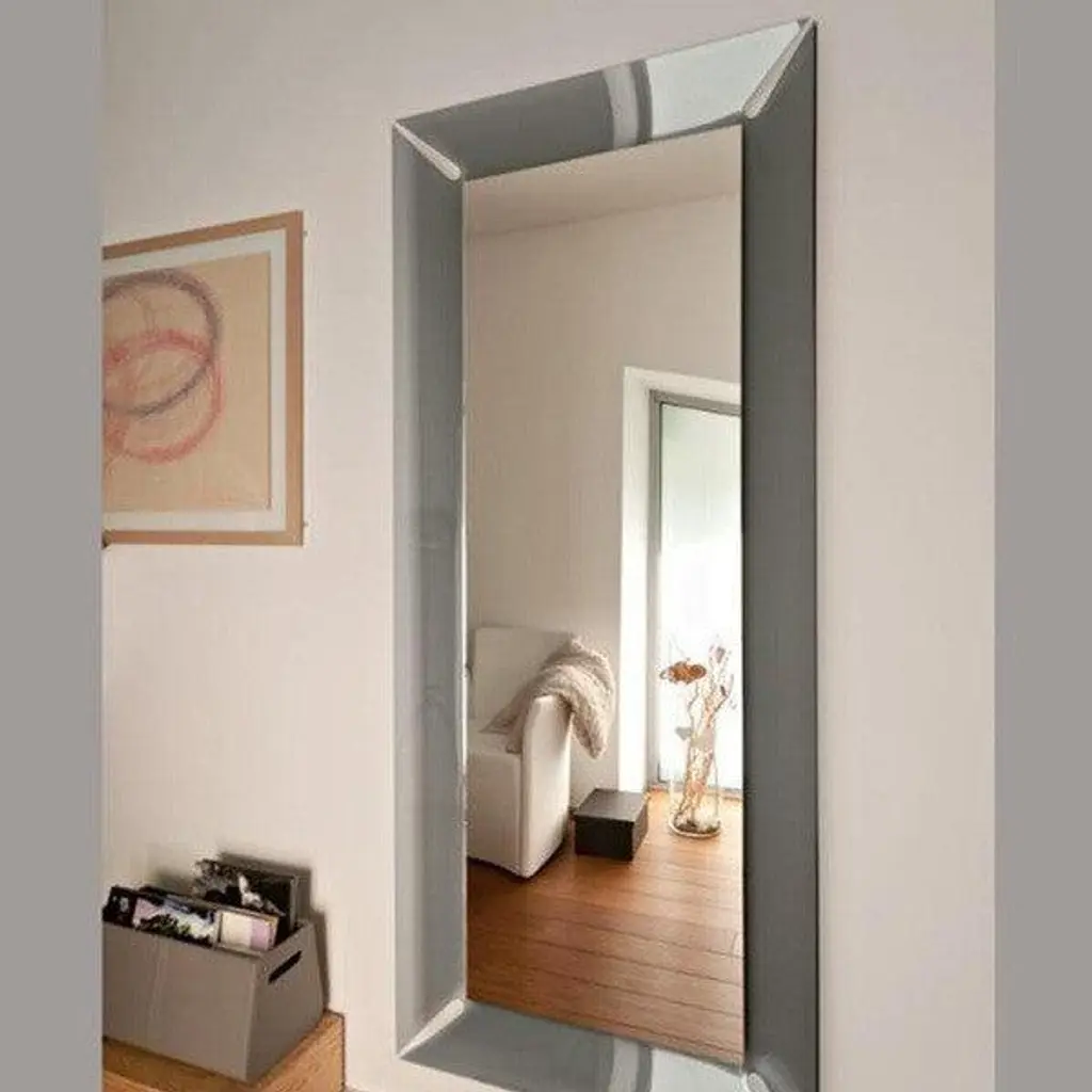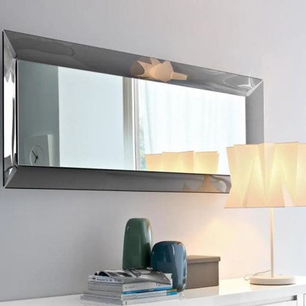Large rectangular mirror with an elegant modern look which can be hung either vertically or horizontally. It features a distinctive 3 7/8"-wide frame made of curved silvered glass giving it a further touch of light. Pleasure is perfect in every room: hall, living room or bedroom.