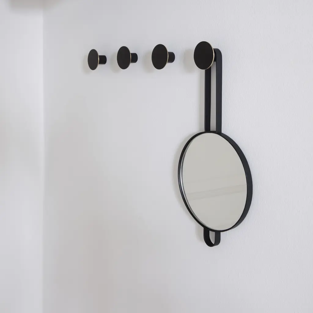 Hand mirrors serve as both a functional tool and a stylish accessory. The Poise Hand Mirror, crafted from brass, exemplifies this dual purpose. It is practical for daily use, whether you’re checking your reflection on the go or using it as a decorative statement on your bathroom sink. Additionally, the design includes a mounting feature, allowing you to elegantly hang the mirror on one of our jewelry-inspired hooks, enhancing its decorative appeal while keeping it easily accessible.