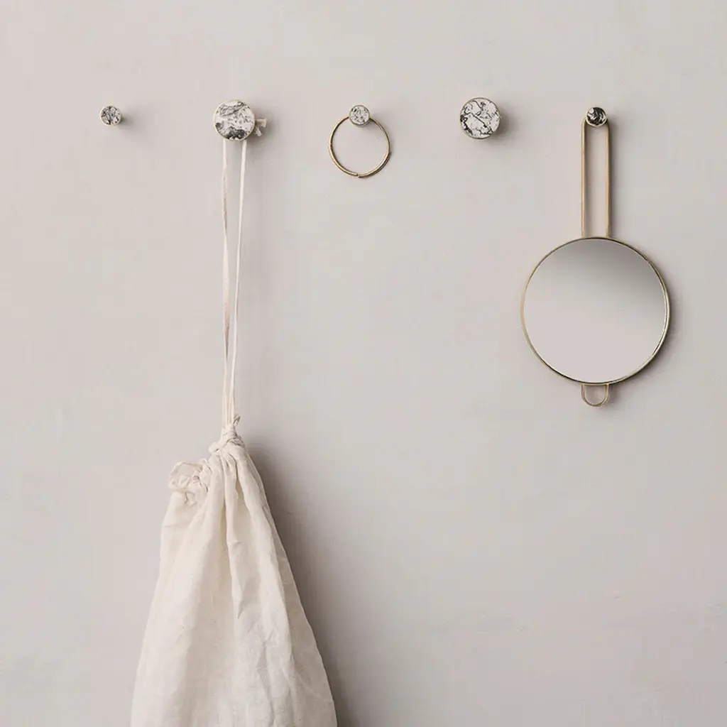 Hand mirrors are the perfect accessory, whether used as an aesthetic statement placed on the bathroom sink or as a handy mirror on the go. Crafted from brass, the Poise Hand Mirror is as practical as it is decorative, and the mounting lets you hang the mirror nicely on one of our Jewelry inspired hooks.