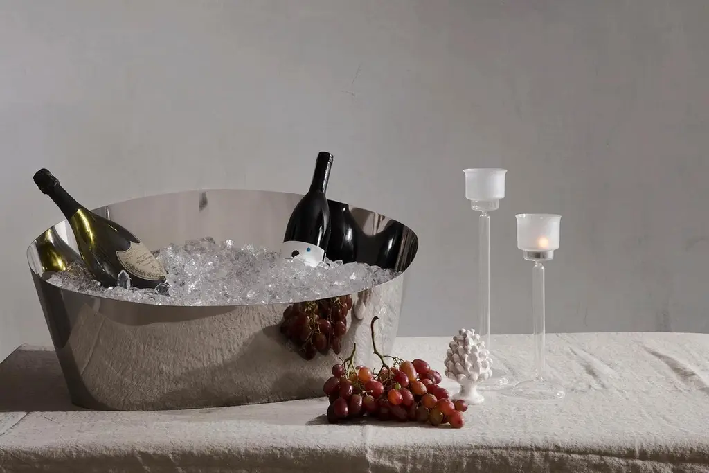 Pond is a steel champagne holder that can also be used as an ice bucket, imbuing every space with a sophisticated and timeless accent. Designed by Aldo Cibic, this piece was crafted of steel with a polished finish that plays with the surrounding light, highlighting the elegant curves of its silhouette. Pond is perfect whether in a domestic space and restaurants or lounge bar.