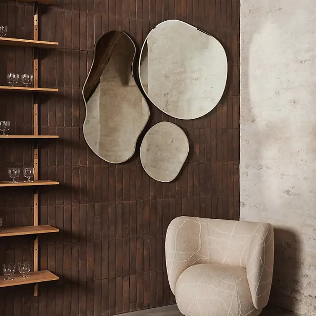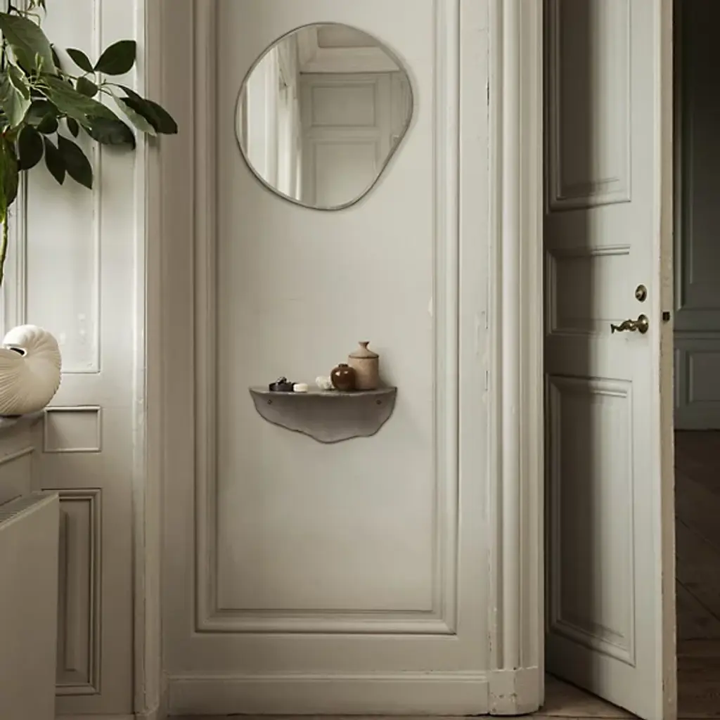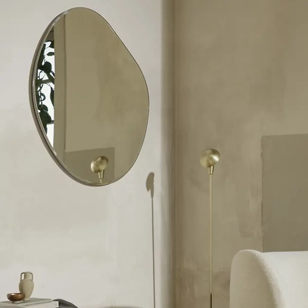 The Pond Mirror from ferm LIVING combines a functional form with the stylish beauty of its organic shapes, transforming a functional mirror into a decorative wall piece. The mirror’s fluid form and curved edges are accompanied by a slim metal frame that adds a touch of depth and intricacy. Able to be hung in any direction, its smooth contemporary design draws the eye with ease.