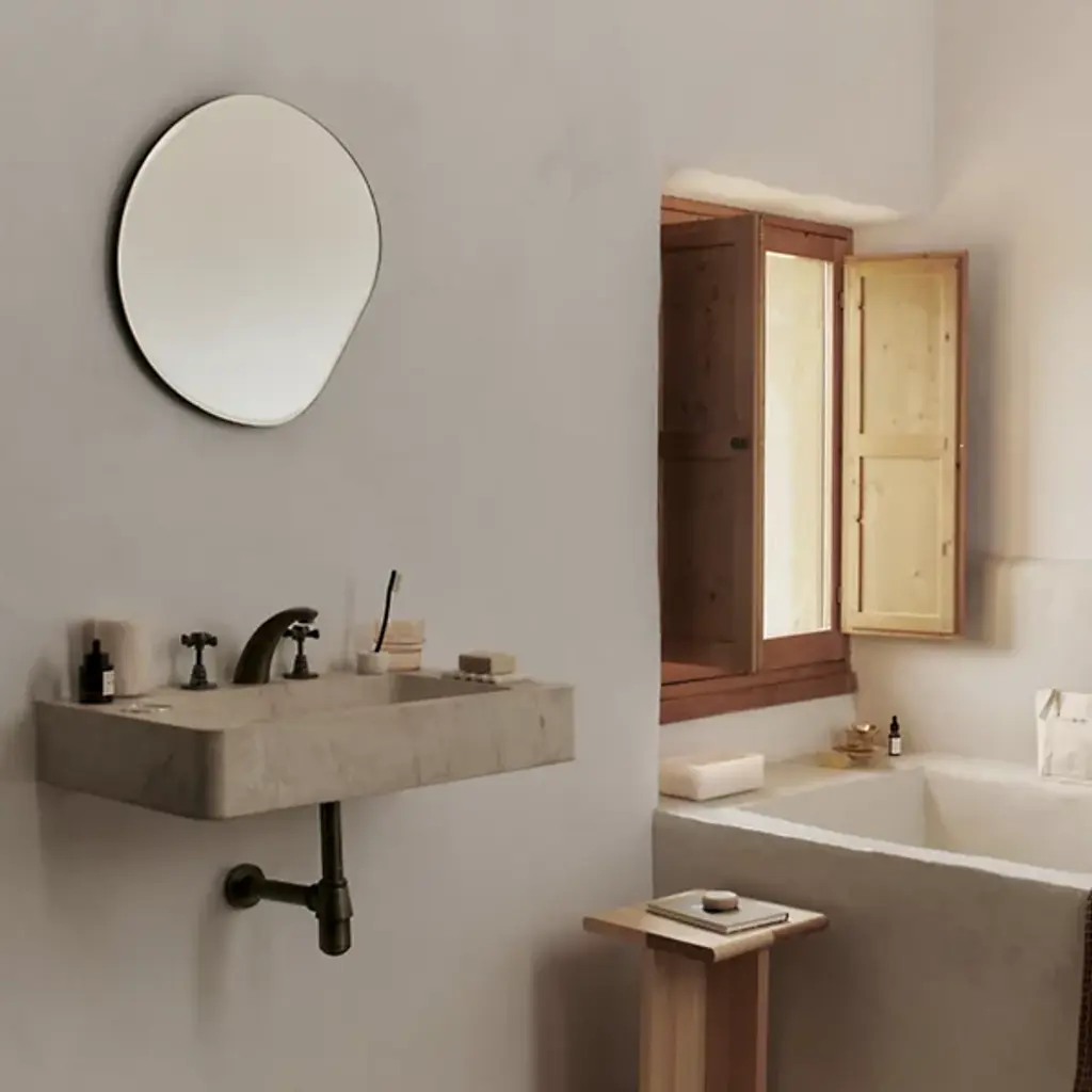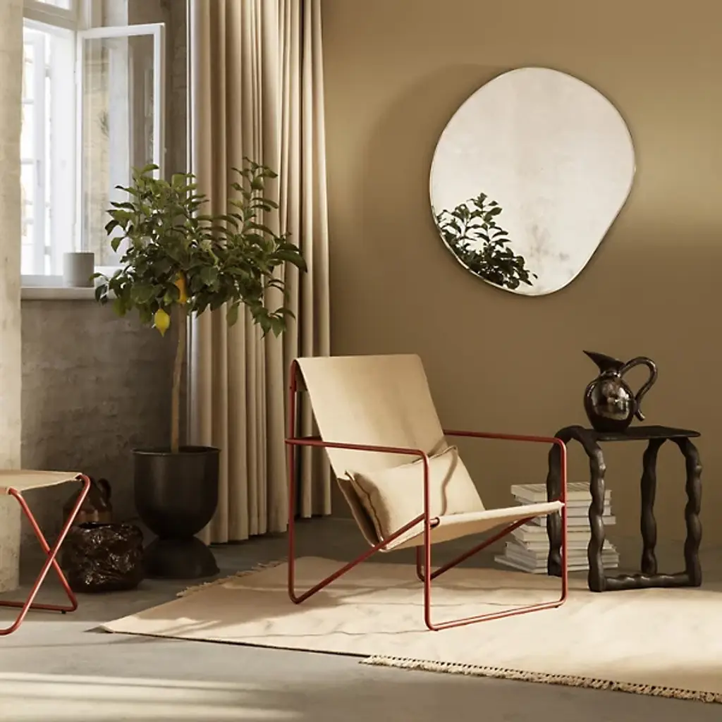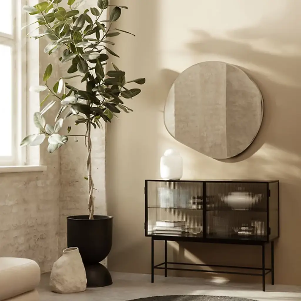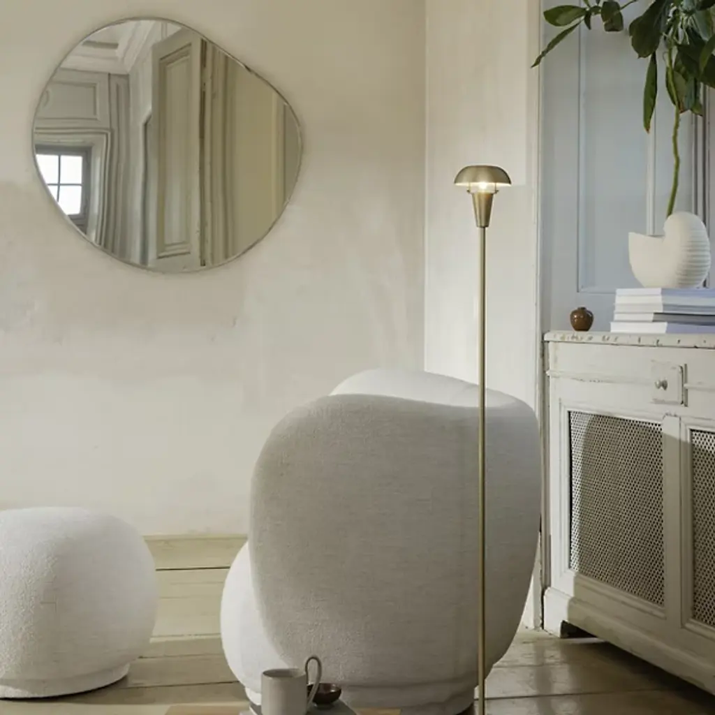 The Pond Mirror from ferm LIVING combines a functional form with the stylish beauty of its organic shapes, transforming a functional mirror into a decorative wall piece. The mirror’s fluid form and curved edges are accompanied by a slim metal frame that adds a touch of depth and intricacy. Able to be hung in any direction, its smooth contemporary design draws the eye with ease.