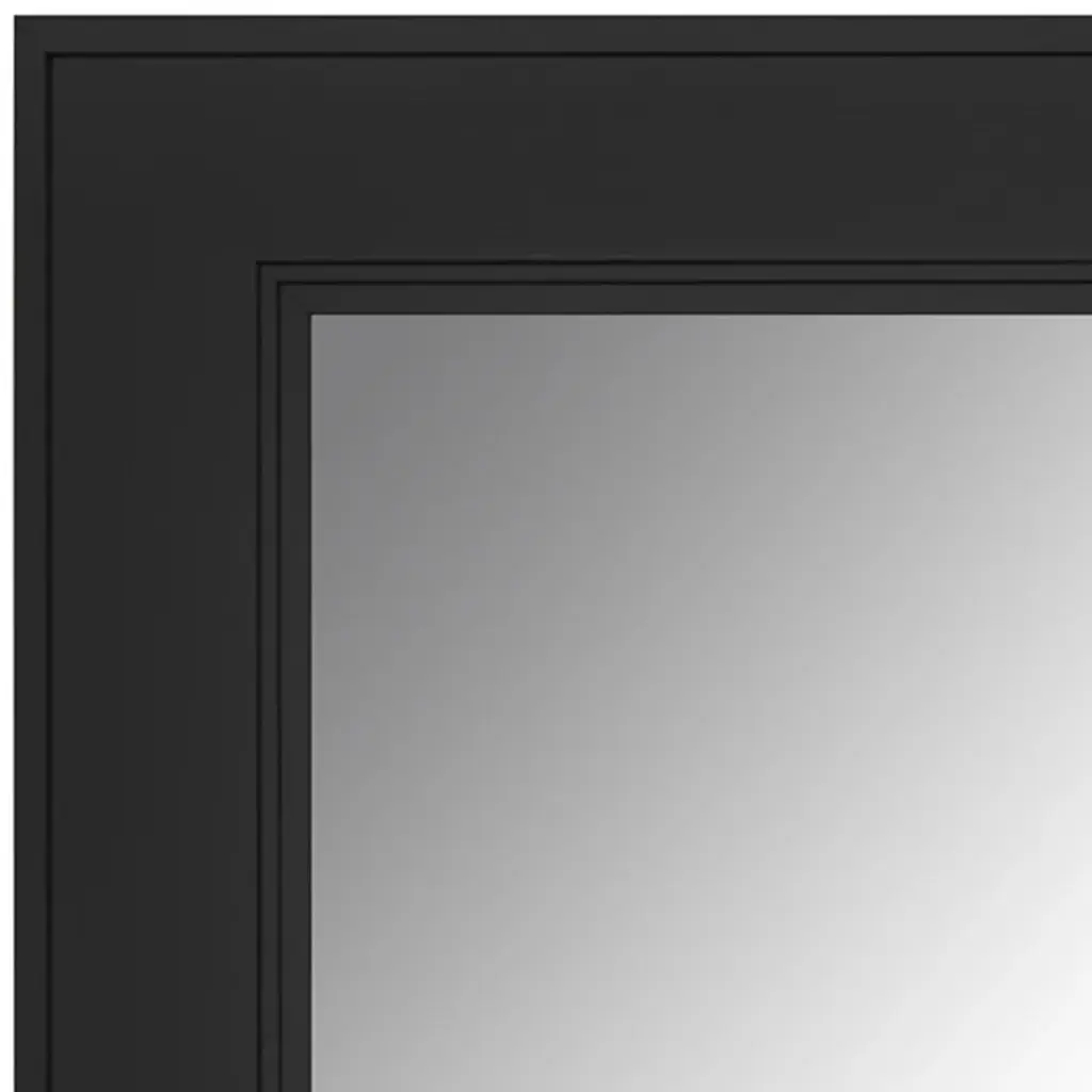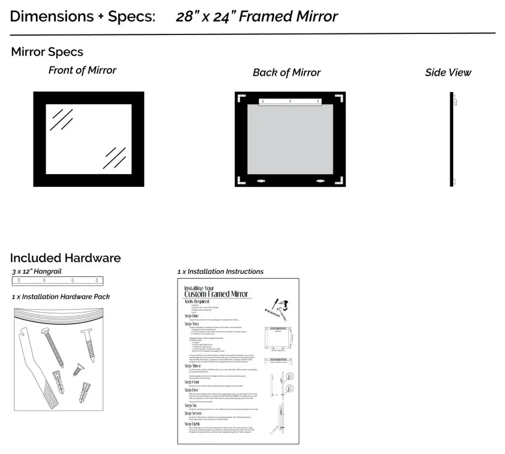 Clean lines give the Porter collection a classic look. Available in black, white, silver and dark gray, this shaker-style collection can match just about any decor or style.Hangrail for installation will be applied on the width of the frame. All assembly hardware and instructions will be included. Additional hangrails are included if the opposite orientation is desired for installation. The dimensions displayed are the final outside dimensions of the frame, including the mirror. CATII safety backing applied on all mirrors. Approved for high-moisture areas such as bathrooms.