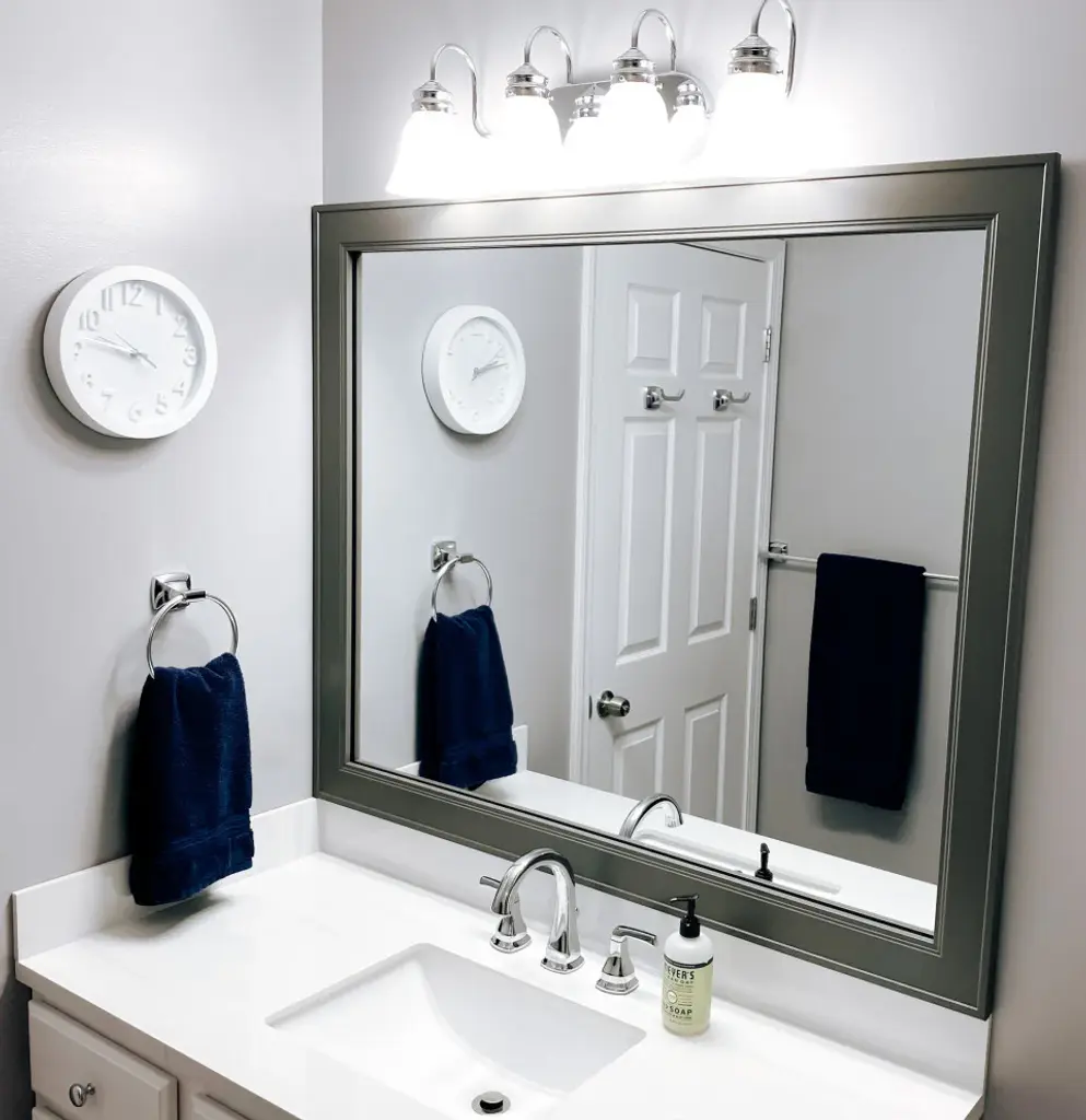 Clean lines give the Porter collection a classic look. Available in black, white, silver and dark gray, this shaker-style collection can match just about any decor or style.Hangrail for installation will be applied on the width of the frame. All assembly hardware and instructions will be included. Additional hangrails are included if the opposite orientation is desired for installation. The dimensions displayed are the final outside dimensions of the frame, including the mirror. CATII safety backing applied on all mirrors. Approved for high-moisture areas such as bathrooms.