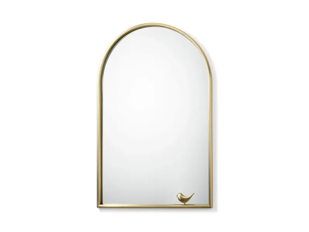 A classic Renaissance monofora is the form that inspired the two mirrors. The arc is defined by brass profile rounded at the bottom, just like on a windowsill to lean on, then a little bird appear: poetic quotations that lead to the practice of the portrait and games of reflections.Portrait with Birdie - Mirror with decor and brass frame