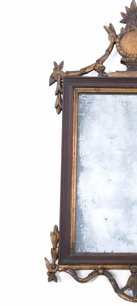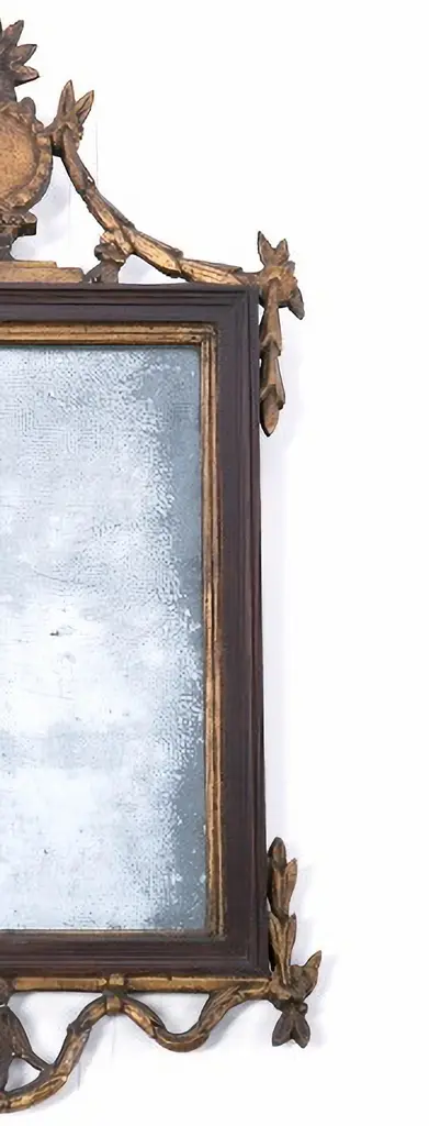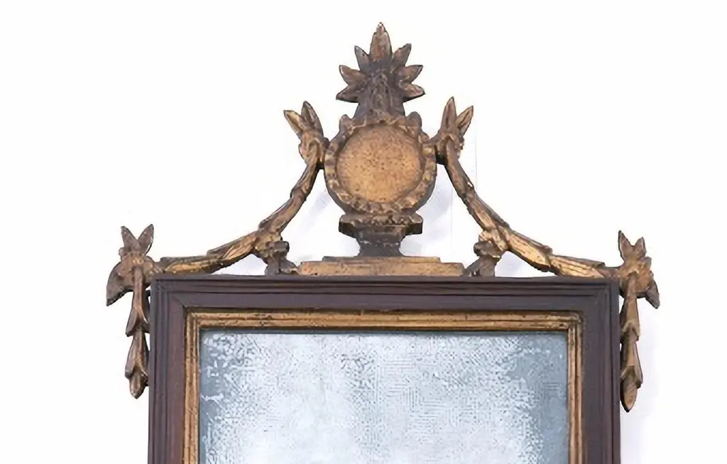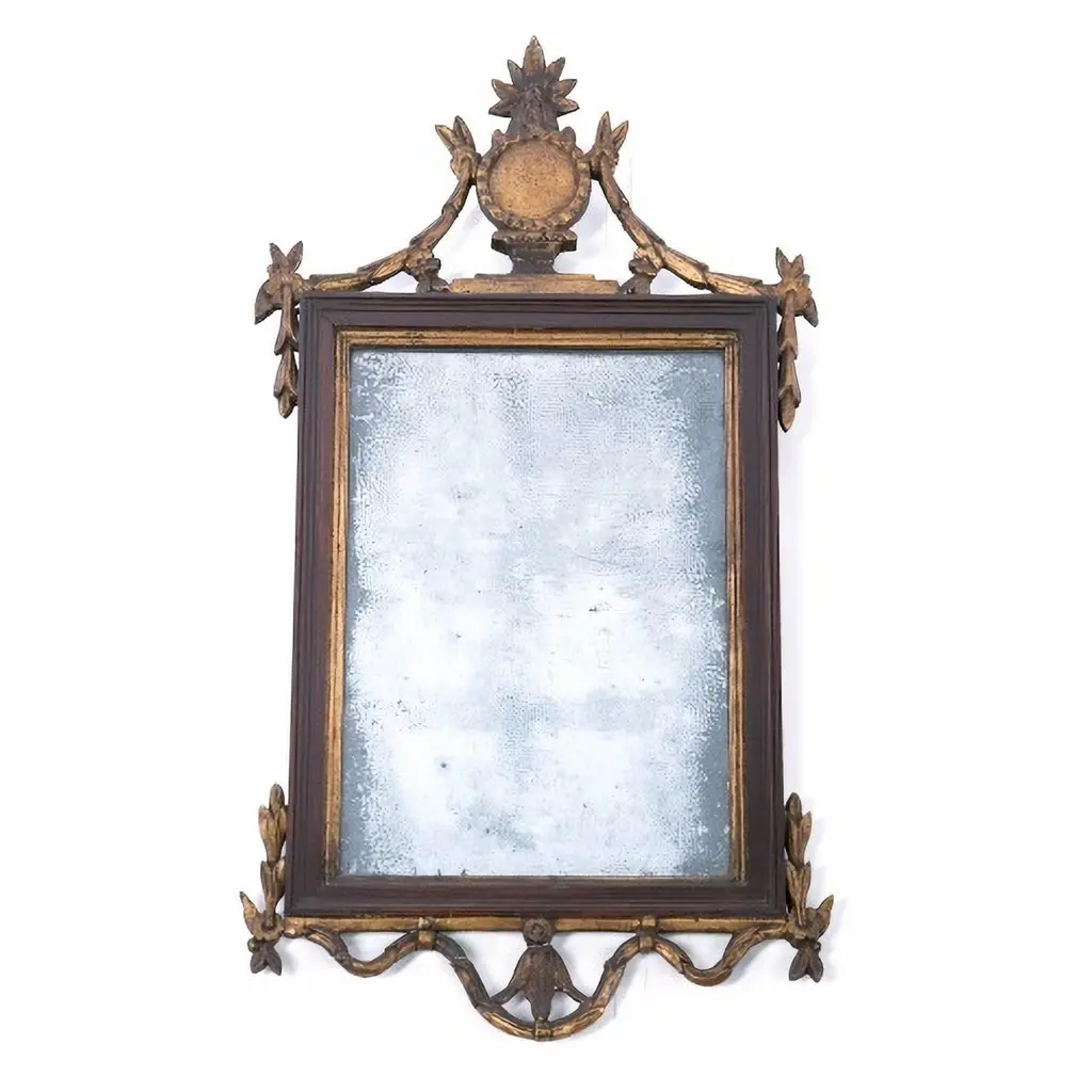 PORTUGUESE ROSEWOOD WALL MIRROR 18th centuryMIRROR D. MARYPortuguese18th Century,rosewood wood frame with gold carvings. Defects.Dim.: 75 x 36 cm.