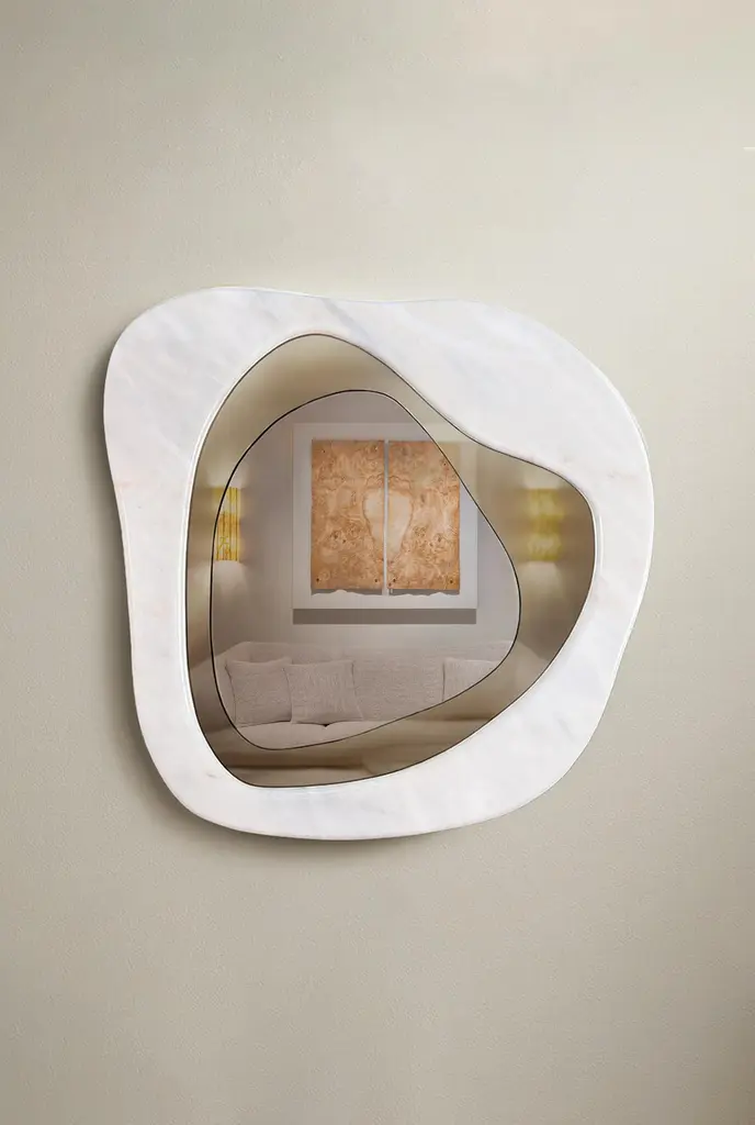 The Powell mirror smoothly reimagines the majestic beauty of the awe-inspiring Reflection Canyon, a remote and magnificent cliff formation in Utah, USA.Crafted from wavy layers of noble materials such as marble, brass and bronze mirror, echoing the sandy hues of the sandstone formation, Powell’s undulating forms authentically recreate the untamed wilderness of this hidden treasure, taking us on a long journey through the serpentine cliffs.The Powell mirror now joins the Arizona mirror and the Navajo Canyon cabinet, other pieces in the Beyond Memory Collection, collectively reflecting Joana Santos Barbosa’s genuine fascination with the breathtaking landscapes found in the remarkable Lands of the Navajo Nation.Photo of Reflection Canyon in Utah, USA © Jay HuangProduct detailsBronze mirror, bronzed polished brass and Estremoz marble.Product optionsOther metals, marbles, wood veneers or lacquered in any Ral Classic color finished in matt, half gloss or high gloss varnish.Weight 27Kg 59,52 lbsMade to order. Custom sizes and other finishes are available under request.Designed by Joana Santos Barbosa, 2024. Handmade in Portugal.