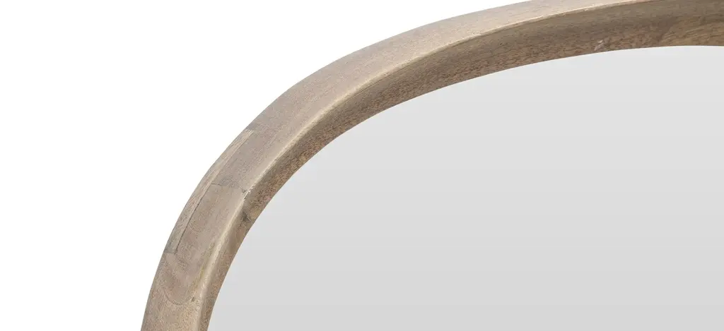 The Priscott Wall Mirror is a wooden rectangular mirror with rounded corners. Two "D" ring attachment points for ease of access wall mounting is included to hang mirror.