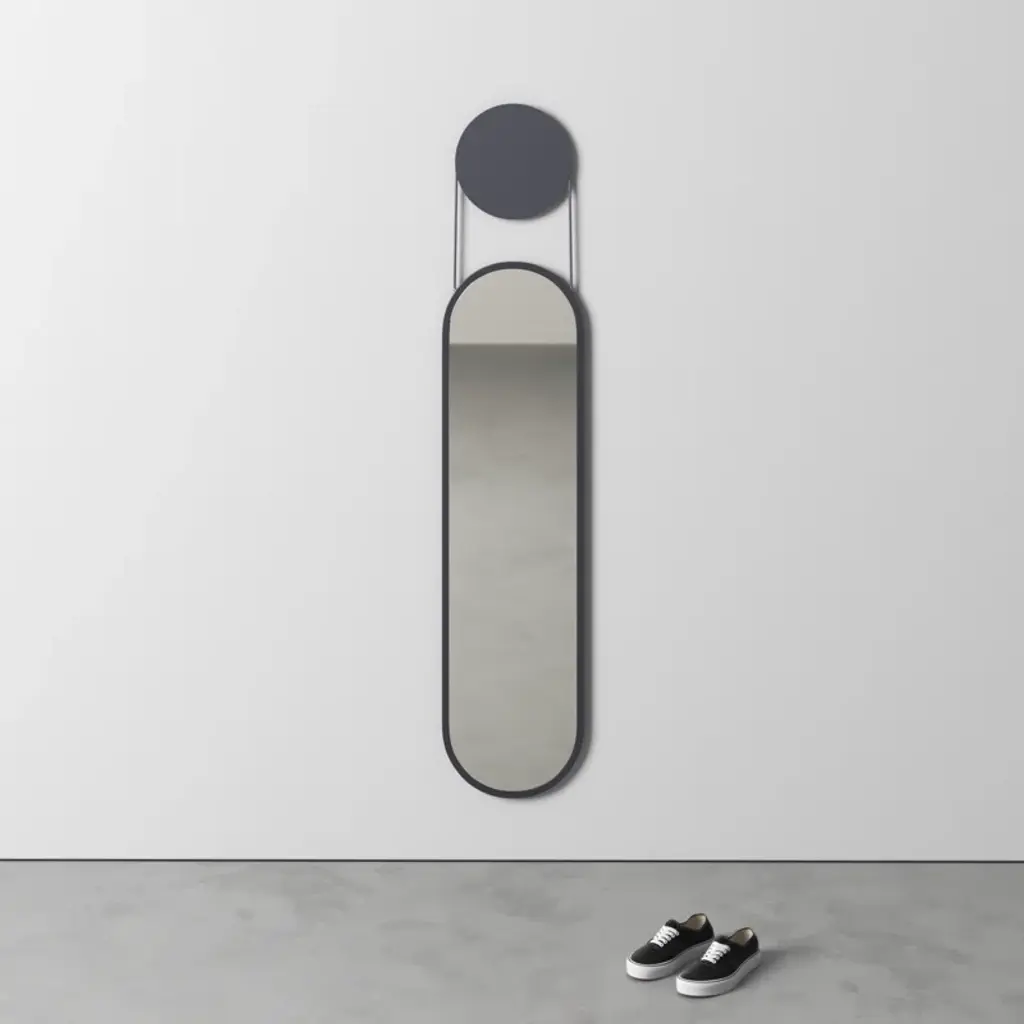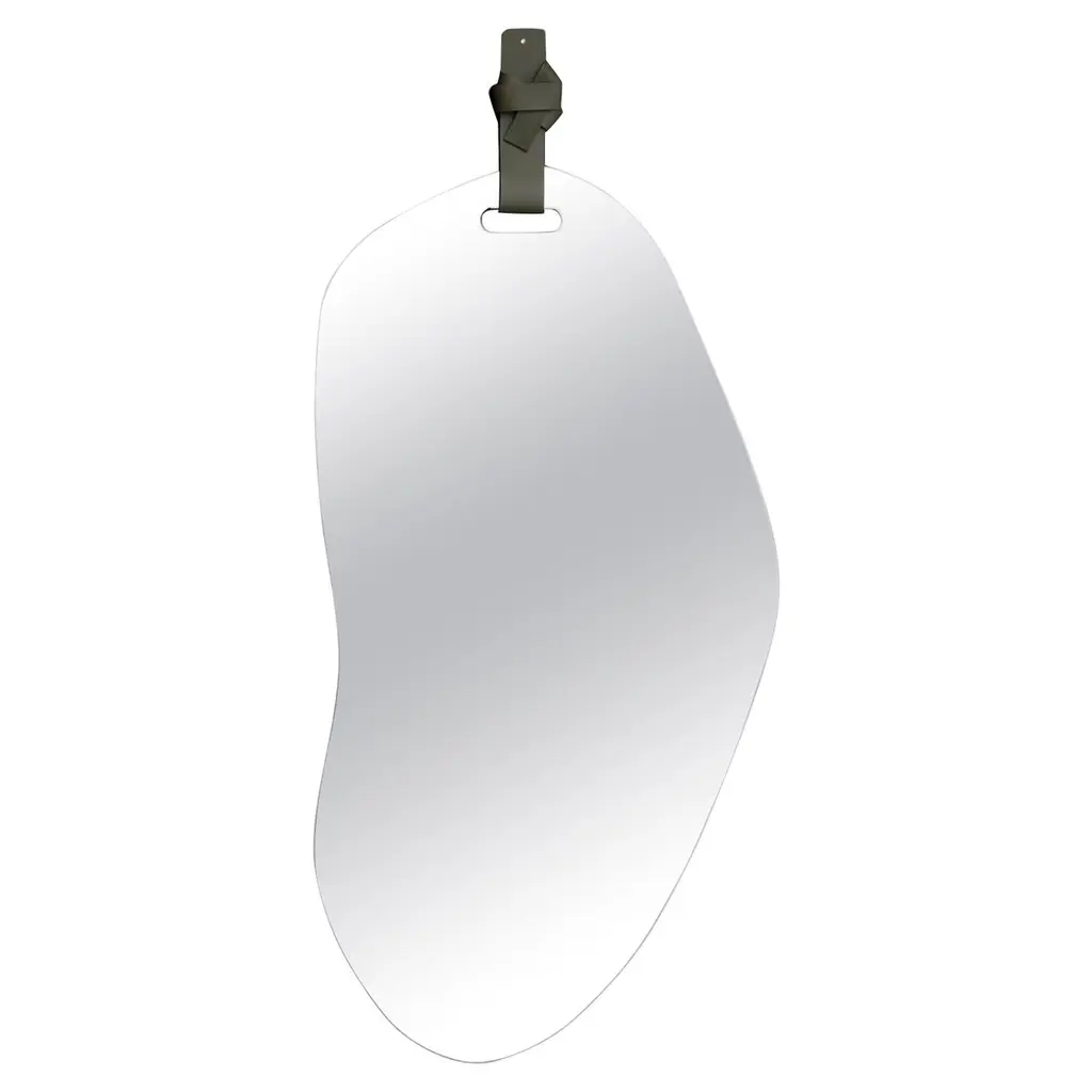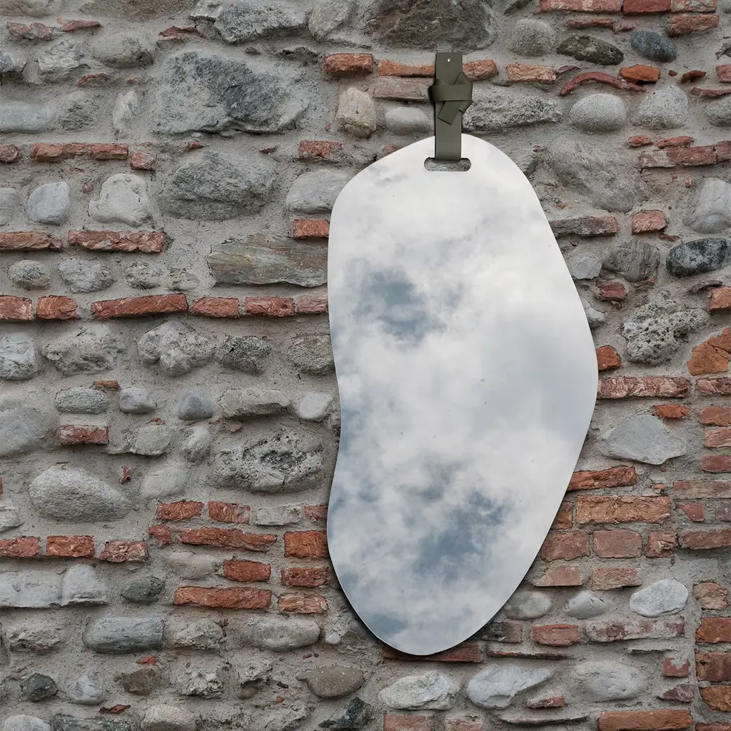The leather knot, symbolizing the cohesion between the external and internal environment, seamlessly blends with the organic shapes of the mirror, transforming it into a decorative wall piece with fluid forms. Available in three different shapes and sizes, this vertical and larger model, can also be customized with a smooth surface without the hole, catering to individual preferences. Also available in other finishes, please contact the Concierge for more details.
