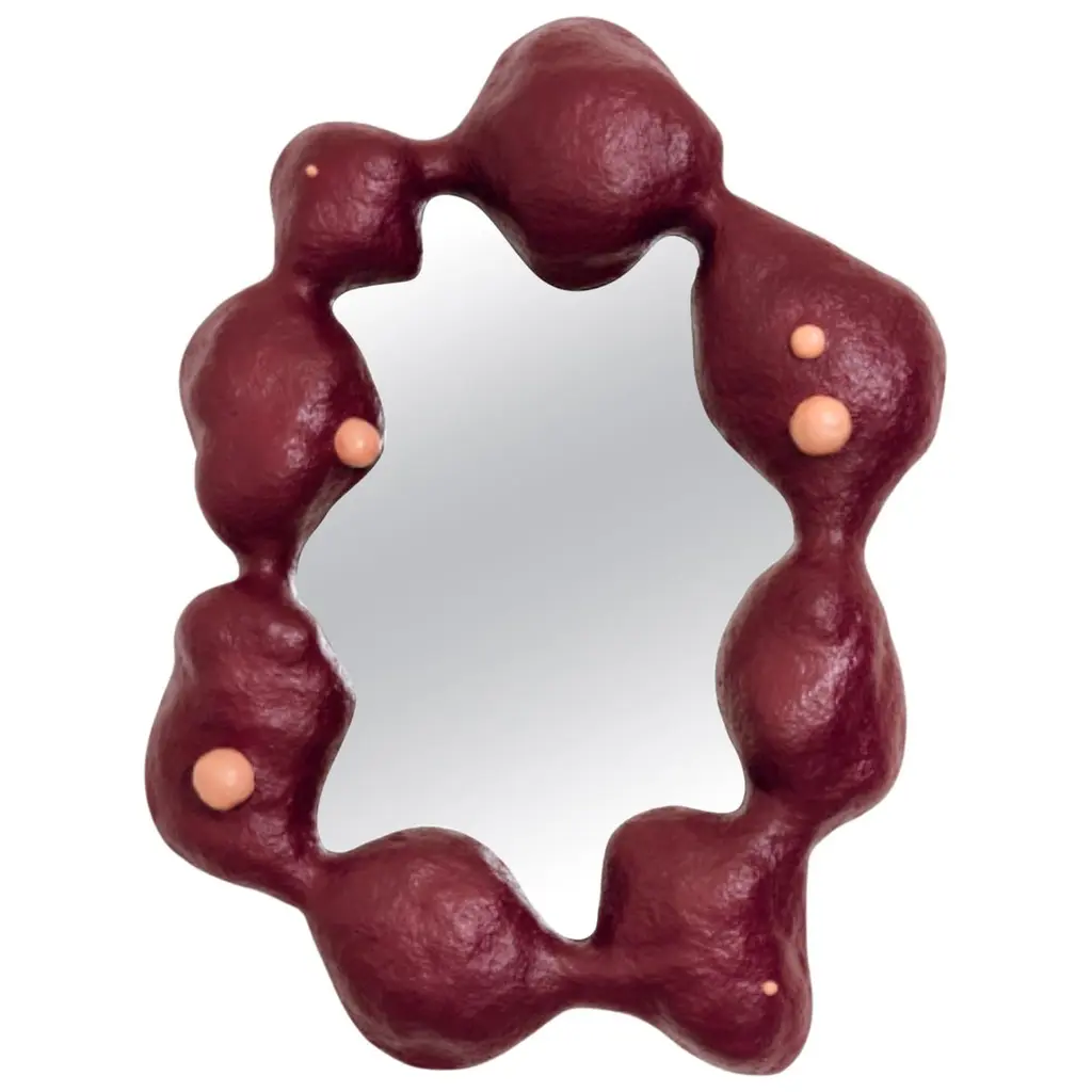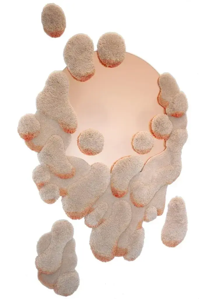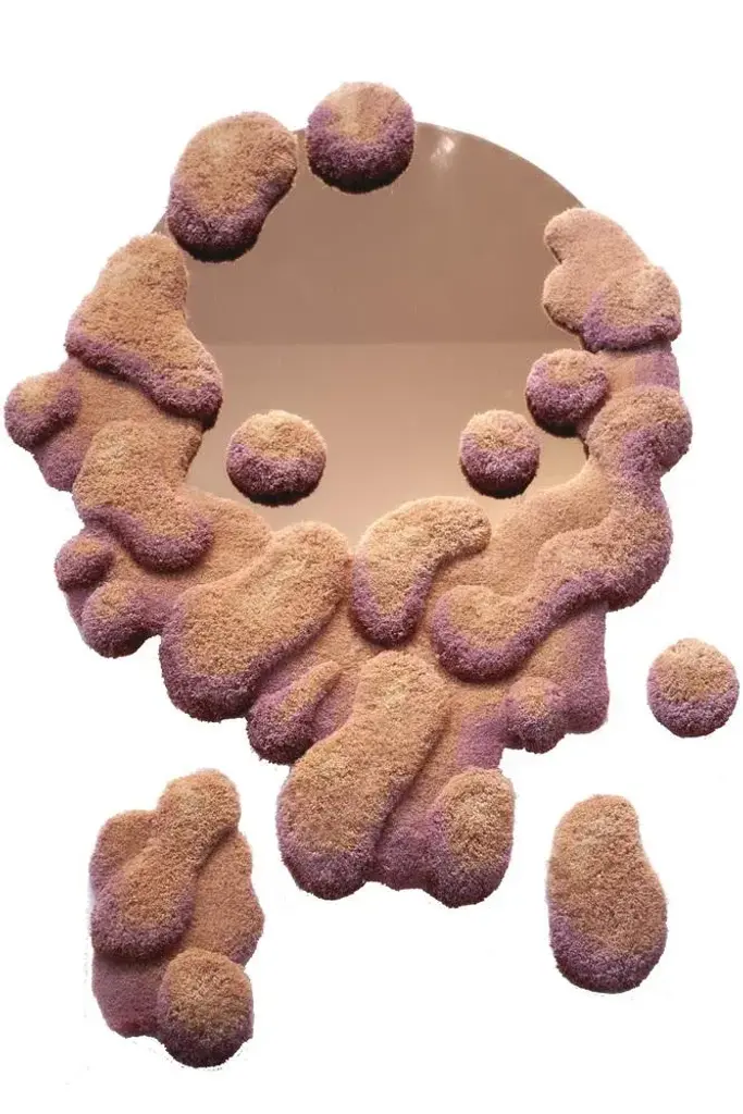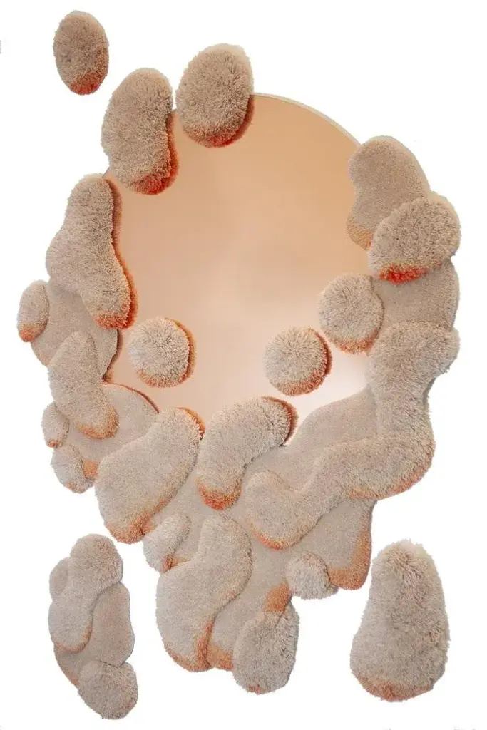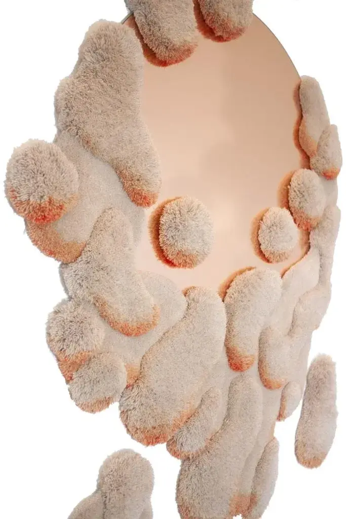 We're thrilled to introduce this beautiful, new work by alfhild külper. A breathtaking organic design to contemplate the world, with pure fun and pleasure. A soft tufted sustainable yarn, organically shaped frame on a color tinted mirror, it is. according to alfhild: "pure morning portal is a doorway to a world without worries. Bathing in gold pink light. A state of calm and joy. Always reflecting your sunshine self. A better world that was always here, that walked beside you. As real as this one, always within reach. Dripping with honey and delight". pure morning portal is hand tufted and embroidered of 80% eucalyptus yarn and 20% wool. The layers of different heights are sculpted to create a lushly textured landscape. The rug has a rich cotton backing and is finished with a hand applied embroidery stitch. The yarns are collected factory leftovers from the netherlands, india and nepal. Depending on the availability of yarns, small color variations can appear. Custom designs are possible as well. size: w 120 x h 150 x d 10 cm weight: 8 kg