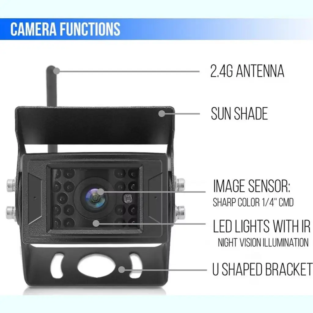 Upgrade your vehicle's safety with the Pyle Rearview Mirror Monitor and Wireless Backup Camera System (PLCMTR78WIR). This system features a 7" TFT LCD monitor that easily clips onto your existing rearview mirror. The wireless backup camera provides clear visuals even in low light, thanks to its night vision capability. It displays distance scale lines to help you park and reverse safely. The universal mounting design ensures easy installation in most vehicles. Additionally, a remote control is included for added convenience.