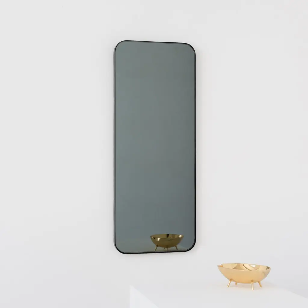 Contemporary black tinted rectangular mirror with an elegant black frame. Part of the charming Quadris collection, designed and handcrafted in London, UK. Supplied fitted with a specialist z-bar for an easy installation. A split batten hanging system to fit the mirror completely flush with the wall is available on demand. The pictures show a small size, measuring 27cm x 68cm x 1.8cm / 10.6'' x 26.8'' x 0.71'' (see technical drawings for reference).This mirror is fully customisable.ORDERS OF MULTIPLE MIRRORS OF THE SAME TYPE: Please contact us to receive a Packing and Shipping quote when ordering multiple mirrors of the same type. An order for multiple mirrors of the same type may not be accepted without extra packing and shipping fees. Thank you.