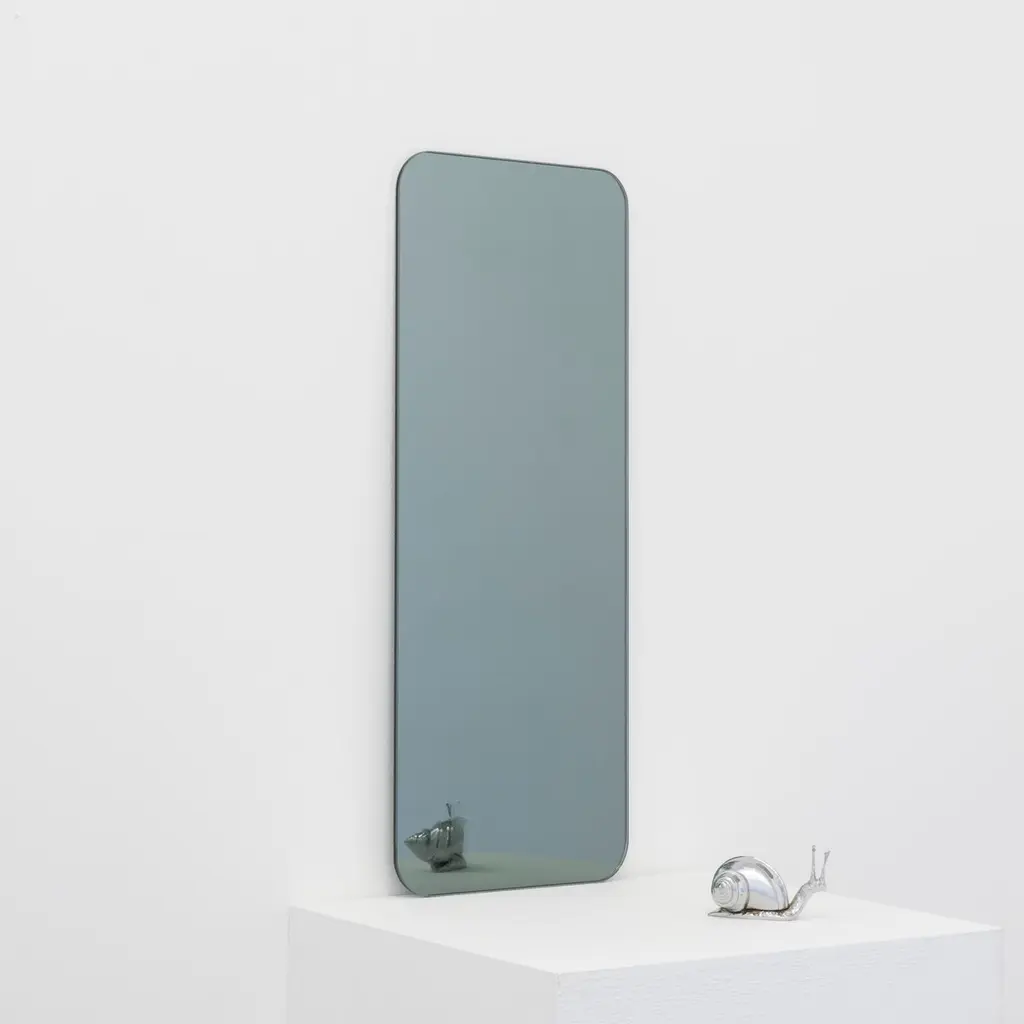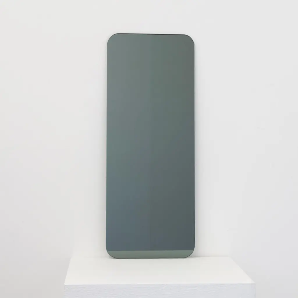 Minimalist rectangular shaped frameless black tinted mirror with a floating effect. Quality design that ensures the mirror sits perfectly parallel to the wall. Designed and made in London, UK.Fitted with professional plates not visible once installed for an easy and safe installation. Lined at the back with a quality safety film. Supplied with all accessories, including screws and wall plugs.This mirror is fully customisable. Shipped safely worldwide.The images show a small size, measuring 27cm x 68cm x 0.6cm / 26.8'' x 10.6'' x 0.24’’.Note that the standard hanging position for this mirror is vertical. If you wish for the mirror to be hanged horizontally, please let our team know and we may adapt the hanging system accordingly.ORDERS OF MULTIPLE MIRRORS OF THE SAME TYPE: Please contact us to receive a Packing and Shipping quote when ordering multiple mirrors of the same type. An order for multiple mirrors of the same type may not be accepted without extra packing and shipping fees. Thank you.