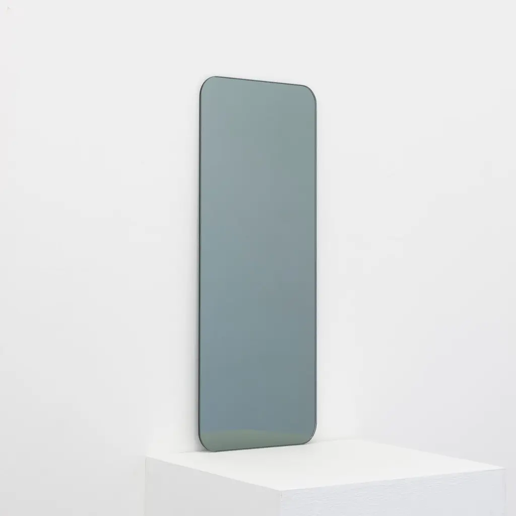 Minimalist rectangular shaped frameless black tinted mirror with a floating effect. Quality design that ensures the mirror sits perfectly parallel to the wall. Designed and made in London, UK.Fitted with professional plates not visible once installed for an easy and safe installation. Lined at the back with a quality safety film. Supplied with all accessories, including screws and wall plugs.This mirror is fully customisable. Shipped safely worldwide.The images show a small size, measuring 27cm x 68cm x 0.6cm / 26.8'' x 10.6'' x 0.24’’.Note that the standard hanging position for this mirror is vertical. If you wish for the mirror to be hanged horizontally, please let our team know and we may adapt the hanging system accordingly.ORDERS OF MULTIPLE MIRRORS OF THE SAME TYPE: Please contact us to receive a Packing and Shipping quote when ordering multiple mirrors of the same type. An order for multiple mirrors of the same type may not be accepted without extra packing and shipping fees. Thank you.