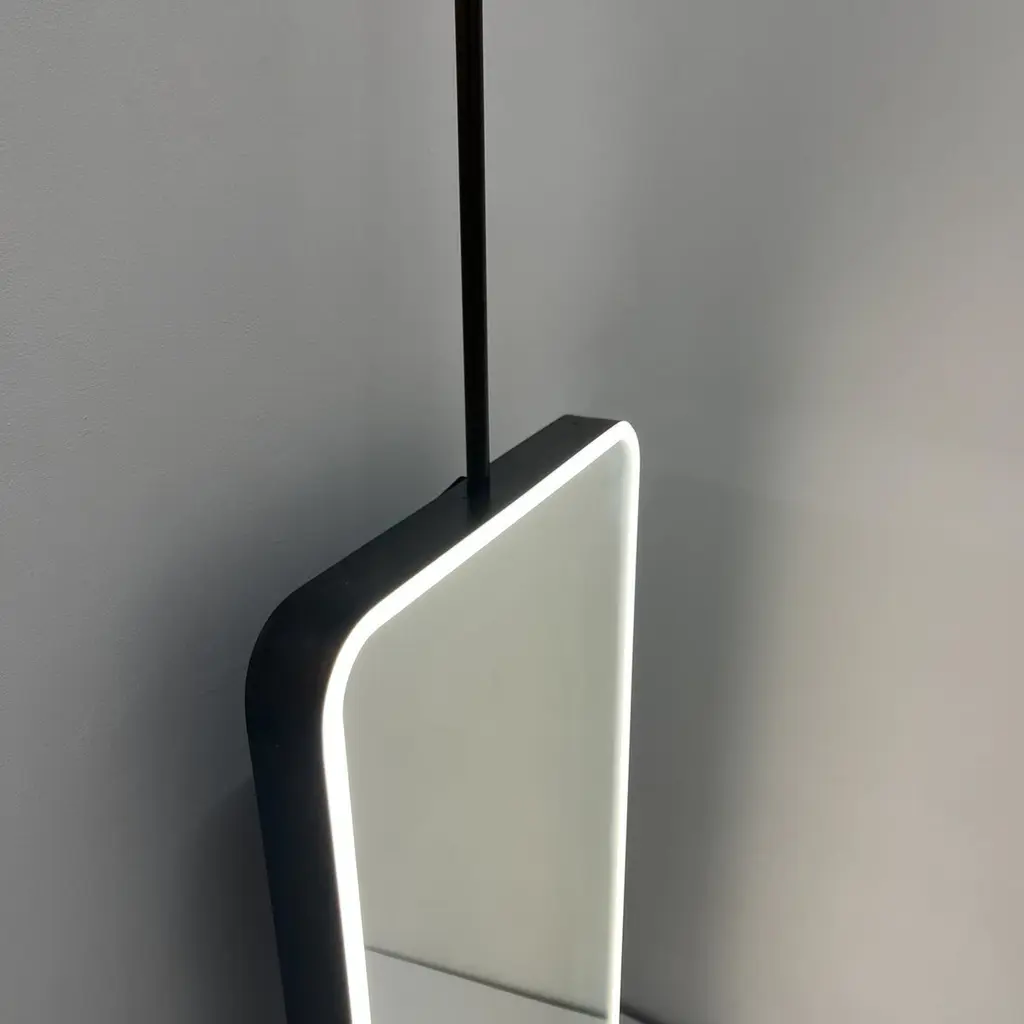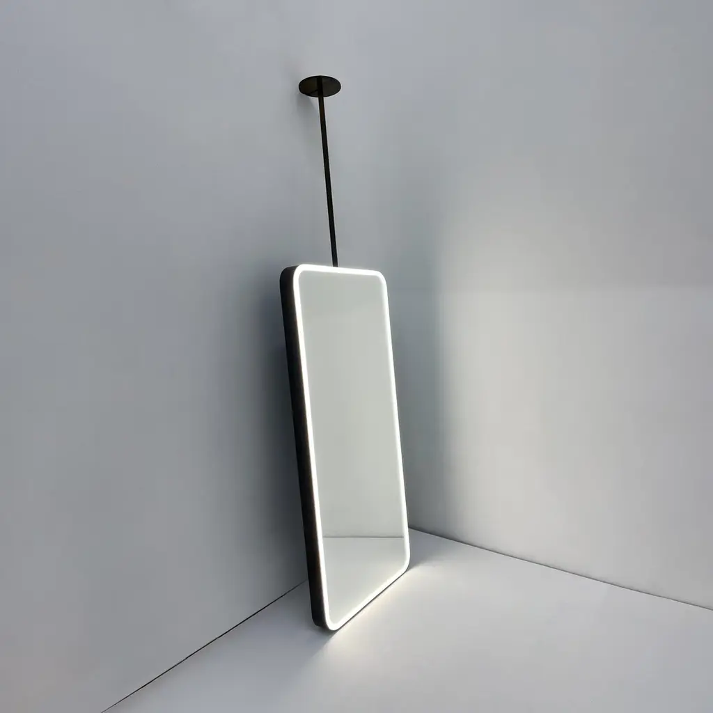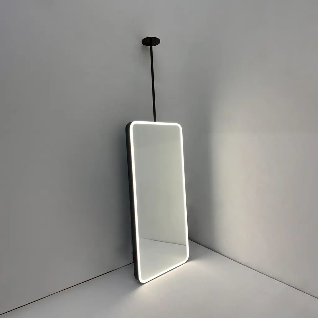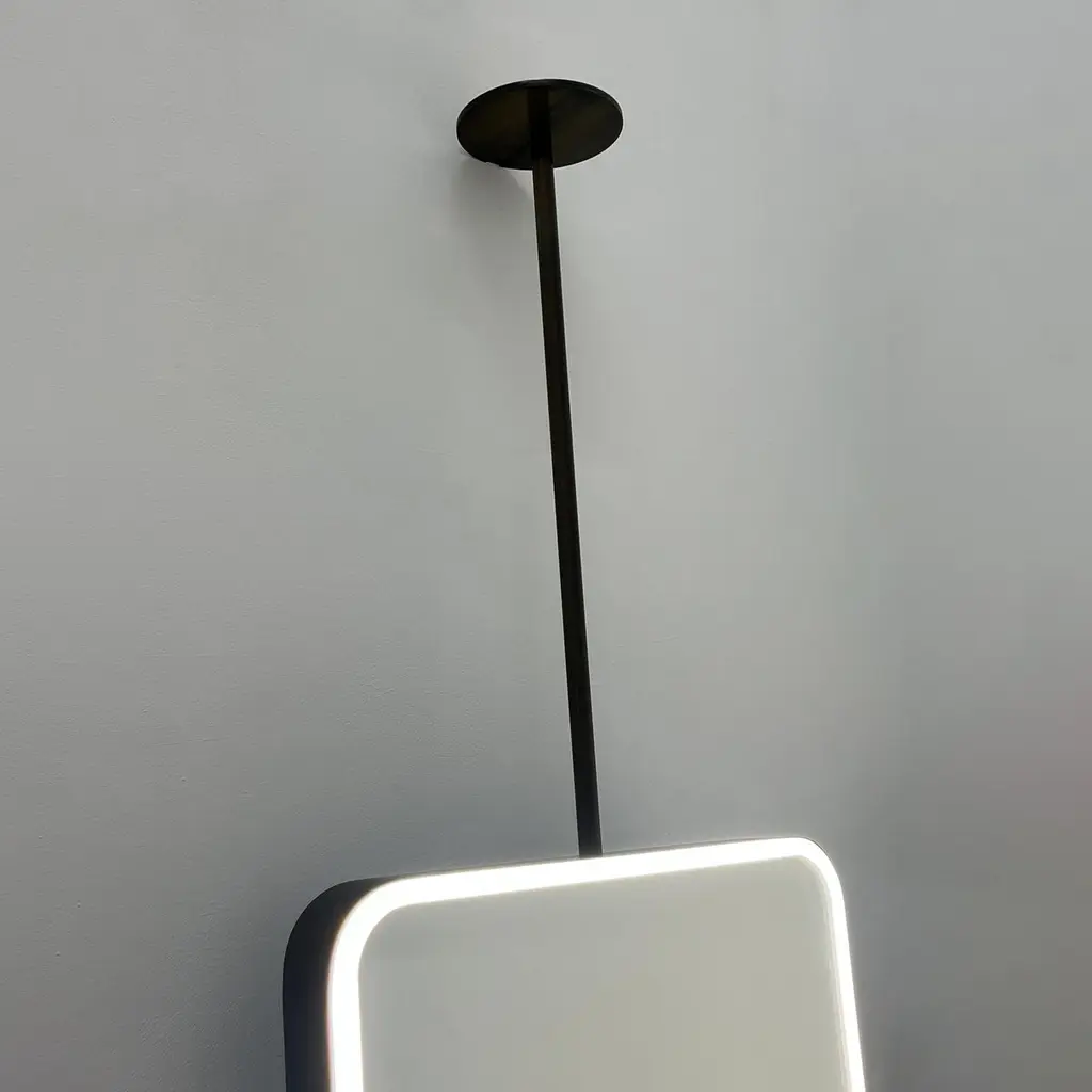 Quadris Ceiling Suspended Illuminated Rectangular Mirror, Bronze Patina Frame