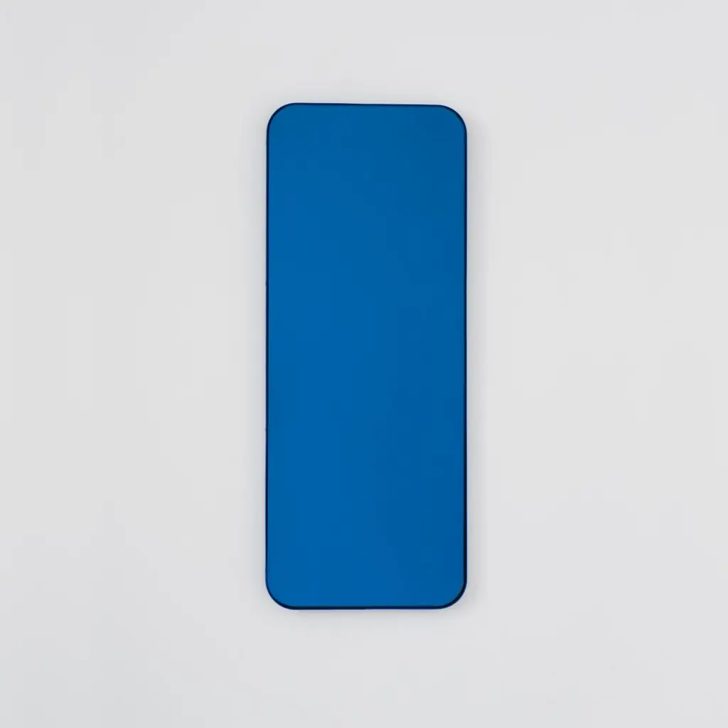Modern rectangular mirror with an elegant blue frame. Part of the charming Quadris™ collection, designed and handcrafted in London, UK. Our mirrors are designed with an integrated French cleat (split batten) system that ensures the mirror is securely mounted flush with the wall. An alternative hanging hook or a Z-bar (depending on the size of the mirror) is available on demand for mirrors that need to be installed allowing some separation from the wall.The pictures show a small size, measuring 27cm x 68cm x 1.8cm / 10.6'' x 26.8'' x 0.71'' (see technical drawings for reference).This mirror is fully customisable and shipped safely worldwide.ORDERS OF MULTIPLE MIRRORS OF THE SAME TYPE: Please contact us to receive a Packing and Shipping quote when ordering multiple mirrors of the same type. An order for multiple mirrors of the same type may not be accepted without extra packing and shipping fees. Thank you.