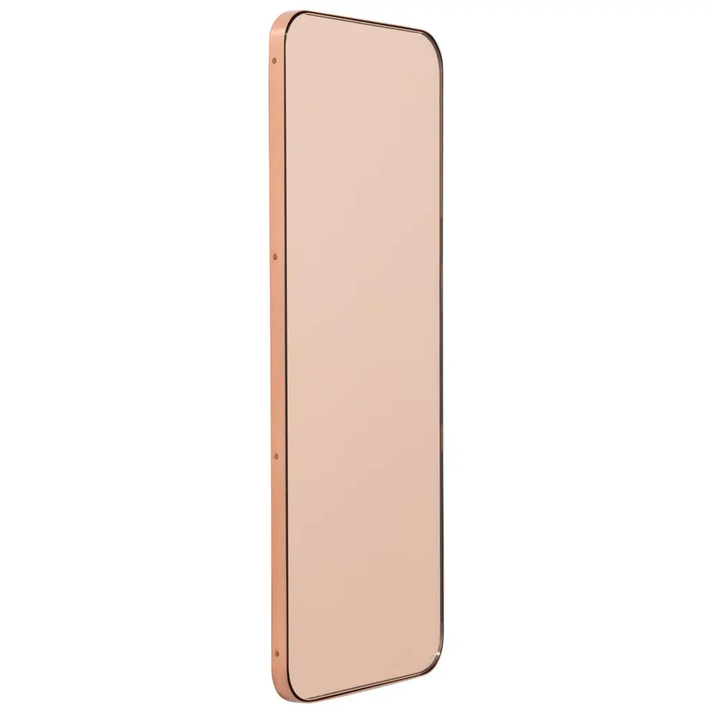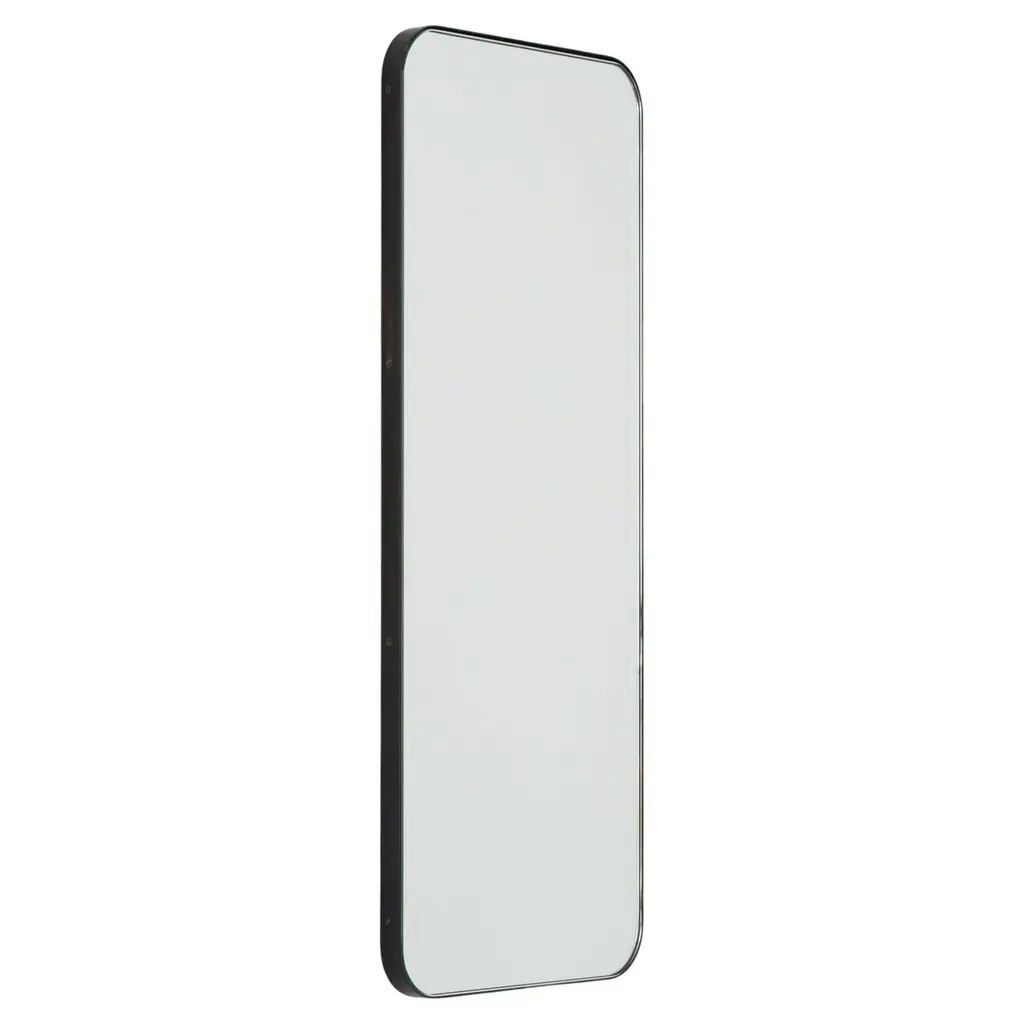 Modern rectangular mirror with an elegant solid bronze patina brass frame. Part of the charming Quadris™ collection, designed and made in London, UK. Our mirrors are designed with an integrated French cleat (split batten) system that ensures the mirror is securely mounted flush with the wall. An alternative hanging hook or a Z-bar (depending on the size of the mirror) is available on demand for mirrors that need to be installed allowing some separation from the wall.This mirror is fully customisable.The mirror in the images illustrates a small size, measuring 27cm x 68cm x 1.8cm / 10.6in x 26.8in x 0.71inShipped safely and insured worldwide. All our mirrors are made on demand. Fabrication lead time for this particular mirror is approximately 4 to 5 weeks. Our mirrors are always shipped by courier express. Shipping via courier express typically requires 1 to 2 days to the UK, or 2 to 7 days outside the UK depending on the destination.Available in the following sizes:Small: 27cm x 68cm x 1.8cm / 10.6'' x 26.8'' x 0.71’’Medium: 37cm x 56cm x 1.8cm / 14.6'' x 22" x 0.71’’Large: 46cm x 71cm x 1.8cm / 18.1'' x 28" x 0.71’’Extra Large: 48cm x 97cm x 1.8cm / 18.9" x 38.2" x 0.71’’or any bespoke dimensions.Available options:- frame depth: 18mm / 0.71’’, 24mm / 0.94’’ and 30mm / 1.18’’- frame finish: brass (brushed, polished or with a bronze patina), copper, stainless steel, blackened stainless steel, or in a variety of colours- mirror tint: silver, bronze, black, rose gold / peach, blue or green- bevelling- back-illumination creating a halo effect- demister padPlease contact us for a quote for any bespoke specification or added options.ORDERS OF MULTIPLE MIRRORS OF THE SAME TYPE: Please contact us to receive a Packing and Shipping quote when ordering multiple mirrors of the same type. An order for multiple mirrors of the same type may not be accepted without extra packing and shipping fees. Thank you.