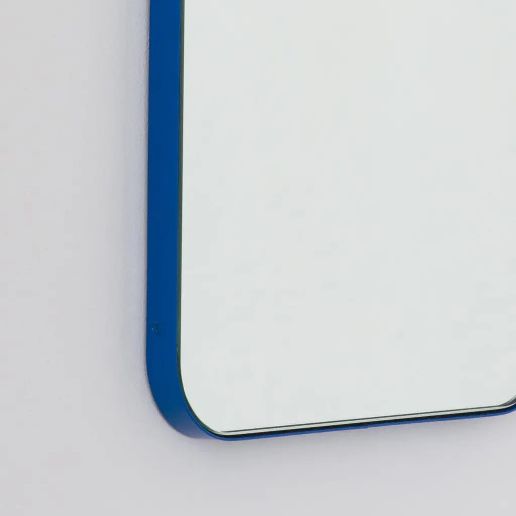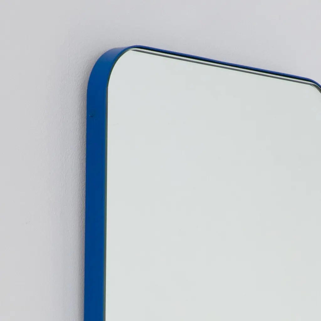 Quadris Rectangular Minimalist Mirror With A Blue Frame, Large