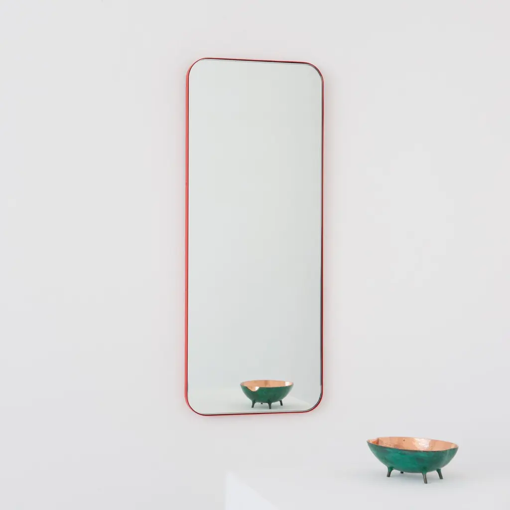 Quadris Rectangular Minimalist Mirror With A Red Frame, Small