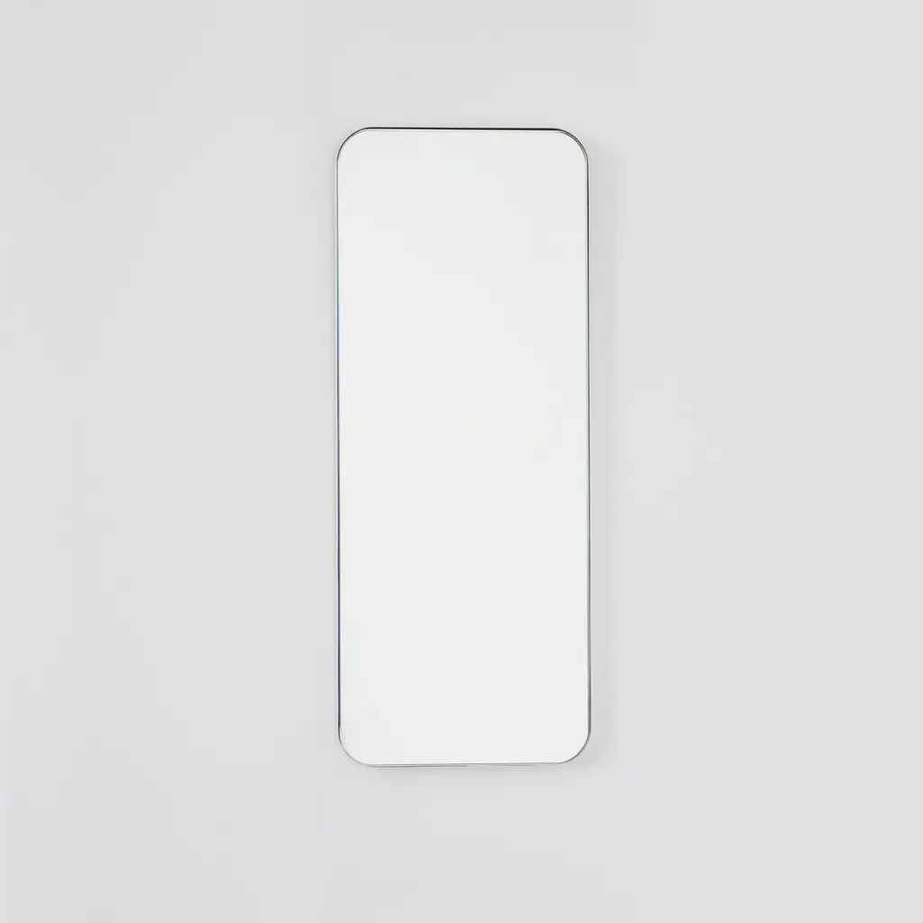 Minimalist rectangular mirror with a modern white frame. Part of the charming Quadris collection, designed and handcrafted in London, UK. Supplied fitted with a specialist z-bar for an easy installation. A split batten hanging system to fit the mirror completely flush with the wall is available on demand.The pictures show a small size, measuring 27cm x 68cm x 1.8cm / 10.6'' x 26.8'' x 0.71'' (see technical drawings for reference).This mirror is fully customisable and shipped safely worldwide.ORDERS OF MULTIPLE MIRRORS OF THE SAME TYPE: Please contact us to receive a Packing and Shipping quote when ordering multiple mirrors of the same type. An order for multiple mirrors of the same type may not be accepted without extra packing and shipping fees. Thank you.