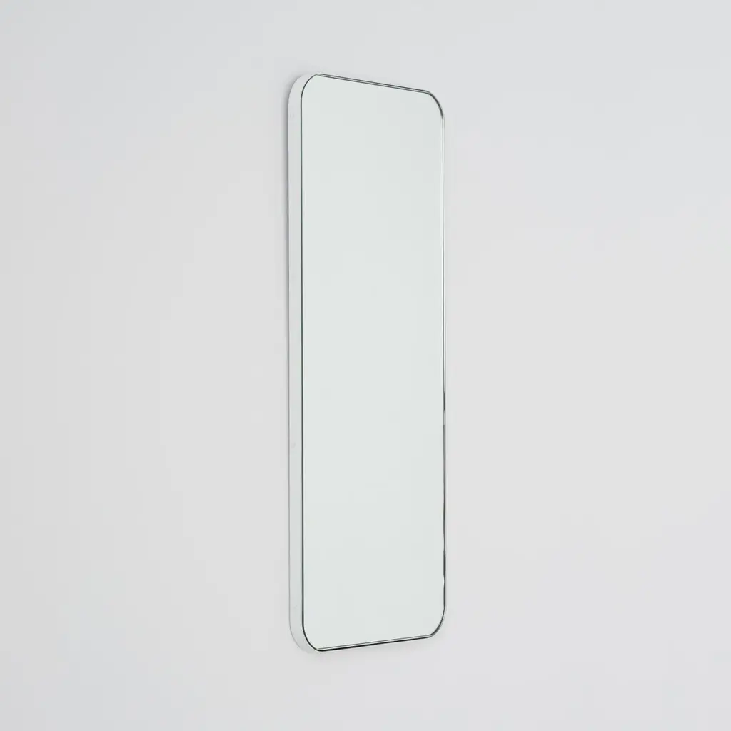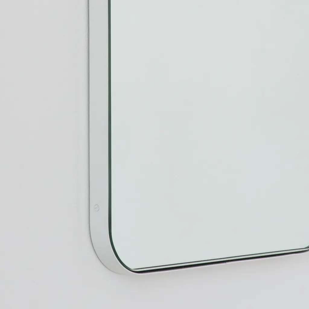 Minimalist rectangular mirror with a modern white frame. Part of the charming Quadris collection, designed and handcrafted in London, UK. Our mirrors are designed with an integrated French cleat (split batten) system that ensures the mirror is securely mounted flush with the wall. An alternative hanging hook or a Z-bar (depending on the size of the mirror) is available on demand for mirrors that need to be installed allowing some separation from the wall.This mirror is fully customisable.The mirror in the images illustrates a small size, measuring 27cm x 68cm x 1.8cm / 10.6in x 26.8in x 0.71inShipped safely and insured worldwide. All our mirrors are made on demand. Fabrication lead time for this particular mirror is approximately 4 to 5 weeks. Our mirrors are always shipped by courier express. Shipping via courier express typically requires 1 to 2 days to the UK, or 2 to 7 days outside the UK depending on the destination.Available in the following sizes:Small: 27cm x 68cm x 1.8cm / 10.6'' x 26.8'' x 0.71’’Medium: 37cm x 56cm x 1.8cm / 14.6'' x 22" x 0.71’’Large: 46cm x 71cm x 1.8cm / 18.1'' x 28" x 0.71’’Extra Large: 48cm x 97cm x 1.8cm / 18.9" x 38.2" x 0.71’’or any bespoke dimensions.Available options:- frame depth: 18mm / 0.71’’, 24mm / 0.94’’ and 30mm / 1.18’’- frame finish: brass (brushed, polished or with a bronze patina), copper, stainless steel, blackened stainless steel, or in a variety of colours- mirror tint: silver, bronze, black, rose gold / peach, blue or green- bevelling- back-illumination creating a halo effect- demister padPlease contact us for a quote for any bespoke specification or added options.ORDERS OF MULTIPLE MIRRORS OF THE SAME TYPE: Please contact us to receive a Packing and Shipping quote when ordering multiple mirrors of the same type. An order for multiple mirrors of the same type may not be accepted without extra packing and shipping fees. Thank you.