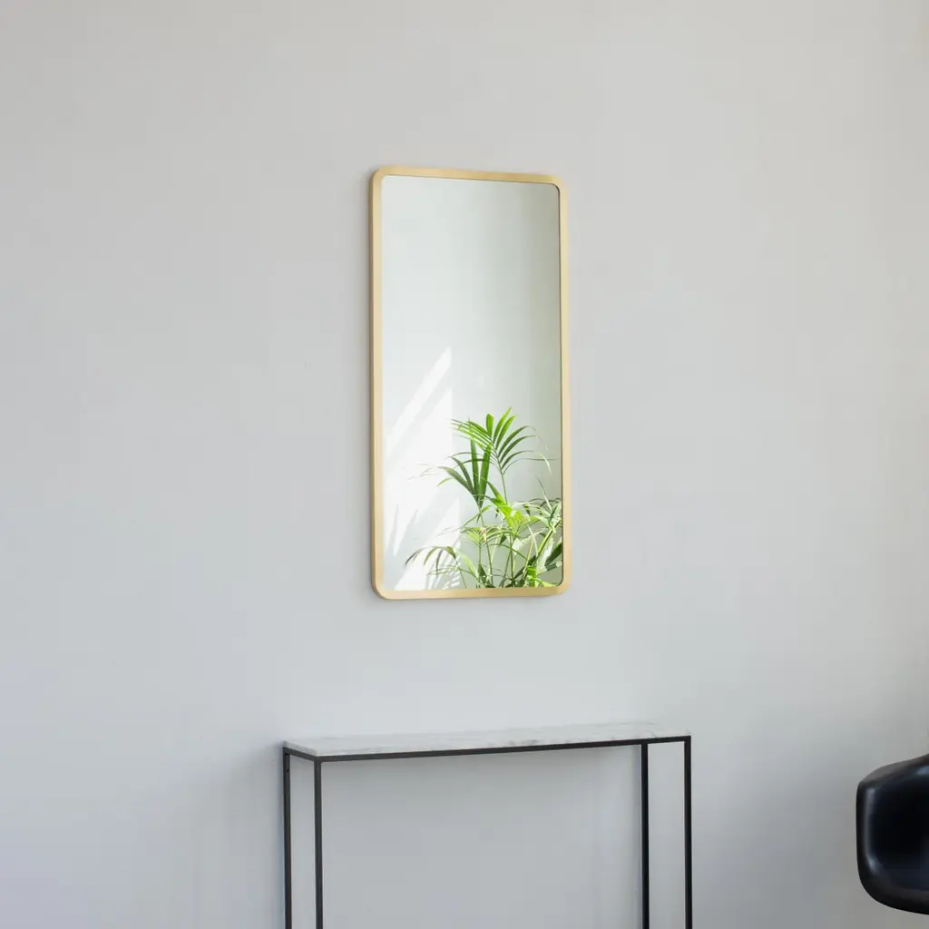 Quadris Rectangular Modern Wall Mirror With Brass Full Frame, Xl