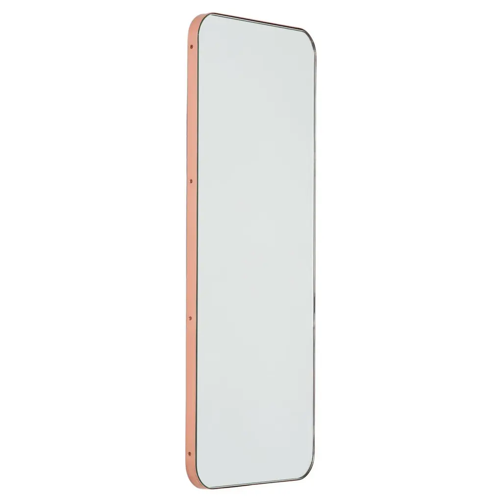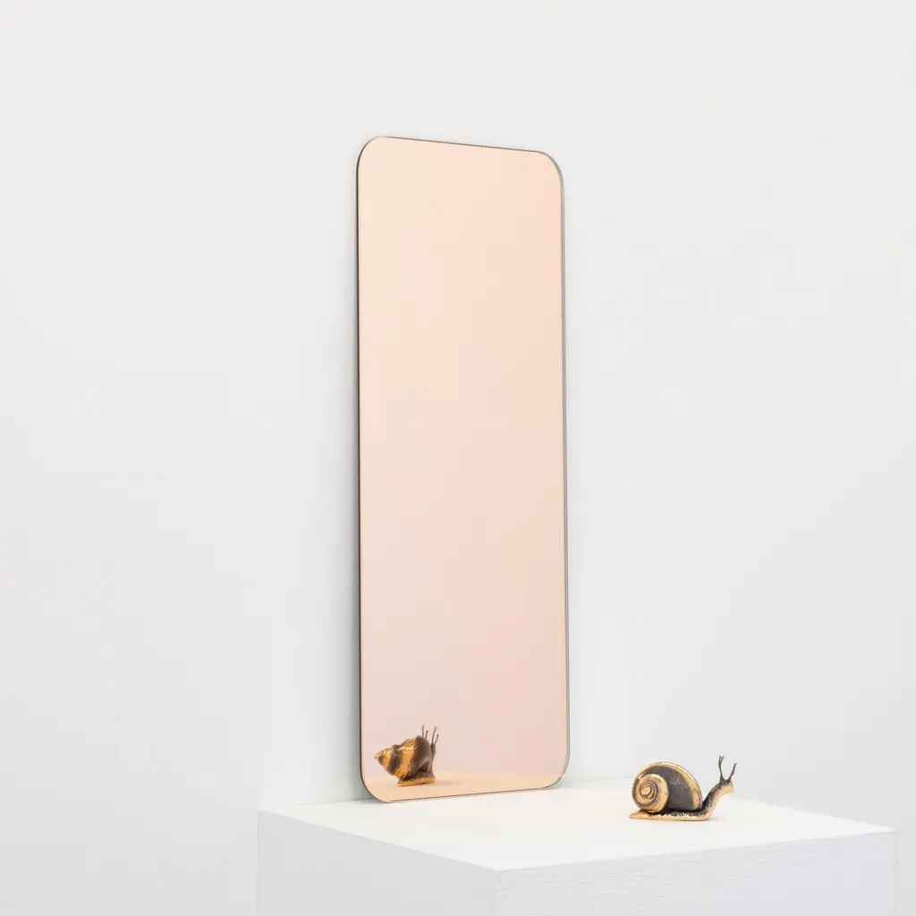 Minimalist Quadris™ rectangular shaped frameless rose gold tinted mirror with a floating effect. Quality design that ensures the mirror sits perfectly parallel to the wall. Designed and made in London, UK.Fitted with professional plates not visible once installed for an easy and safe installation. Lined at the back with a quality safety film. Supplied with all accessories, including screws and wall plugs.This mirror is fully customisable. Shipped safely worldwide.The images show a small size, measuring 27cm x 68cm x 0.6cm / 26.8'' x 10.6'' x 0.24’’.Note that the standard hanging position for this mirror is vertical. If you wish for the mirror to be hanged horizontally, please let our team know and we may adapt the hanging system accordingly.ORDERS OF MULTIPLE MIRRORS OF THE SAME TYPE: Please contact us to receive a Packing and Shipping quote when ordering multiple mirrors of the same type. An order for multiple mirrors of the same type may not be accepted without extra packing and shipping fees. Thank you.