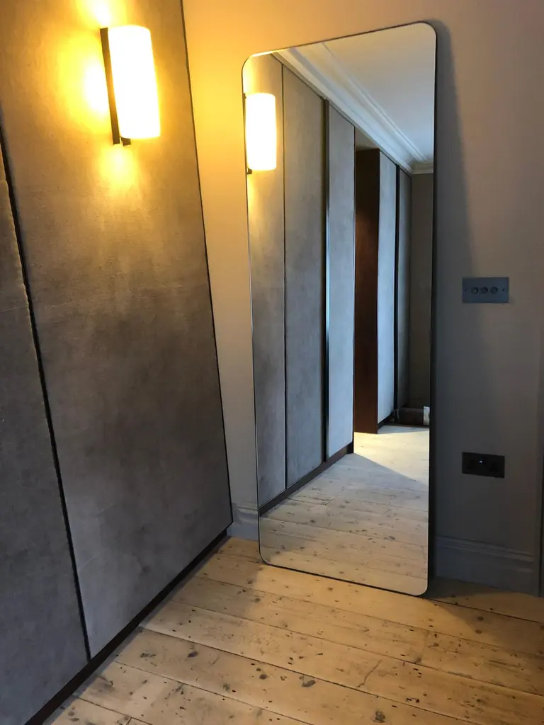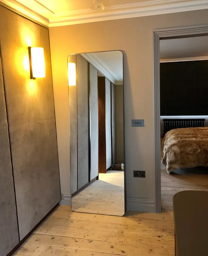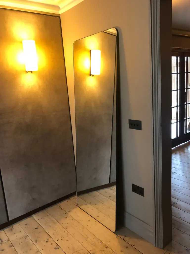 Contemporary oversized wall leaning Quadris™ rectangular mirror with a bronze patina brass frame. Designed and made in London, UK.Dimensions: 70 cm x 200 cm x 1.8 cm / 27.56 in x 78.74 in x 0.71 inThe Neska™ signature bronze patina finish of our frames is a highly skilled and handcrafted process. Carried out by our talented craftsmen, this artistic finish is created from the base metal itself to achieve the natural look of aged brass. This makes the finish of each frame original and unique as no two frames can be identical. Any sample or images provided to obtain your approval on the desired finish or on our website or any other promotional material are therefore for guidance only.Available options:- frame finish: brass (brushed, polished or with a bronze patina), copper, stainless steel, blackened stainless steel, or in a variety of colours- mirror tint: silver, bronze, black, rose gold / peach, blue or green- bevelling- back-illumination creating a halo effect- demister padPlease contact us for a quote or any bespoke specifications.Shipped safely and insured worldwide. All our mirrors are made on demand. Fabrication lead time for this particular mirror is approximately 5 weeks. Our mirrors are always shipped by courier express. Shipping via courier express typically requires 1 to 2 days to the UK, or 2 to 7 days outside the UK depending on the destination.ORDERS OF MULTIPLE MIRRORS OF THE SAME TYPE: Please contact us to receive a Packing and Shipping quote when ordering multiple mirrors of the same type. An order for multiple mirrors of the same type may not be accepted without extra packing and shipping fees. Thank you.