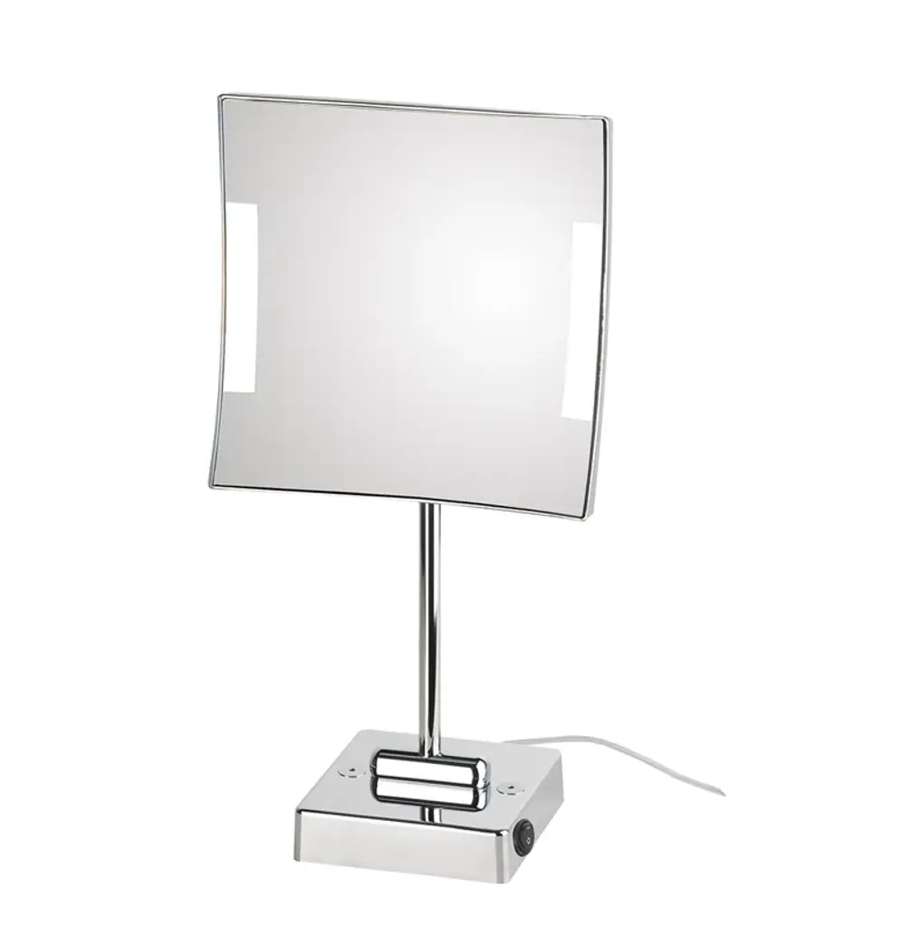 MODO LED Vanity Mirror gives you the perfect light every time. The 5X magnification mirror with 3 different LED colors and a range of light intensity/brightness is the perfect cosmetic companion. The mirror also features a 360° swivel or can be removed from the stand and handheld. LED is powered by a built-in rechargeable battery that charges with a standard USB-C cable, included. The Blomus MODO line is made of titanium-coated steel that is durable, and corrosion and scratch-resistant. The Blomus MODO bath accessory line offers a variety of matching bath designs in the same beautiful ti-coated steel. Touch button light control.