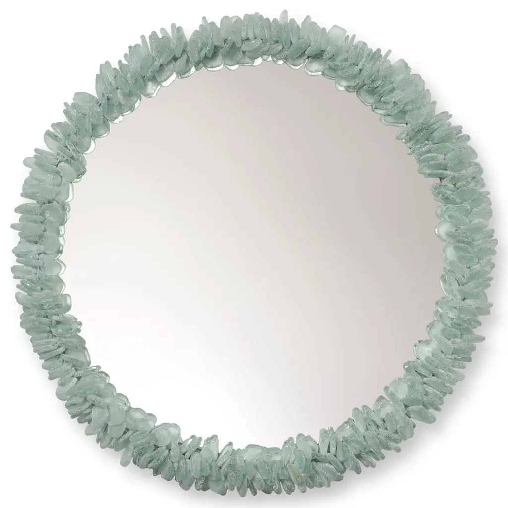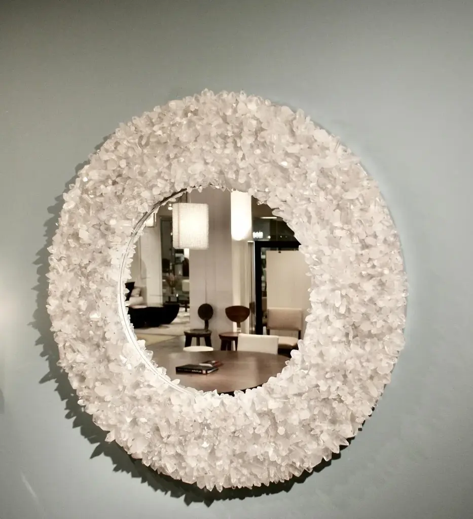 Quartz Crystal Encrusted Circular Mirror By Marjorie Skouras, 42"x42"