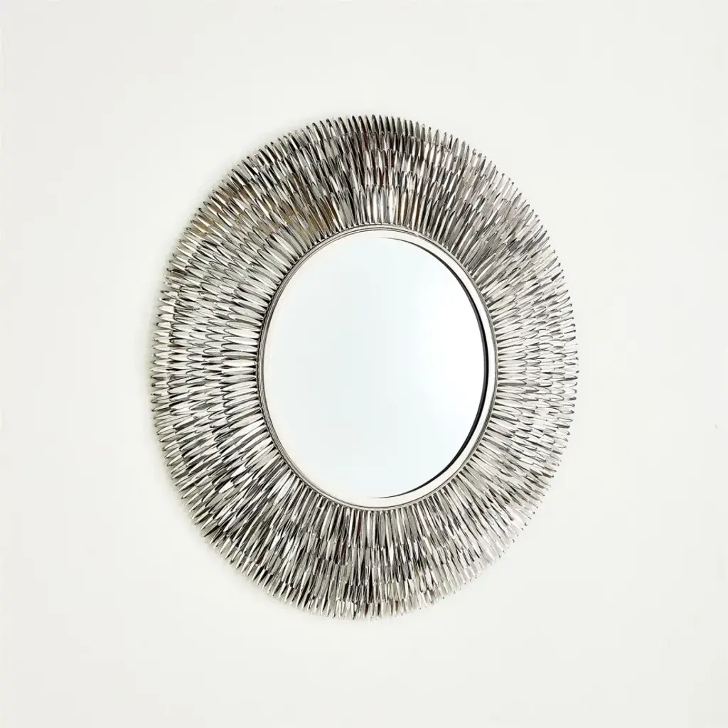 The Quill Burst Mirror is a true work of art, featuring hand-applied steel quills with a shiny nickel finish that burst forth in a captivating display of craftsmanship. This mirror is not just a reflection; it's a statement of beauty and sophistication. From a fashion forward perspective, Global Views offers accessories, furniture, statement lighting, and an assortment of rugs and mirrors to add beauty and joy to your home.