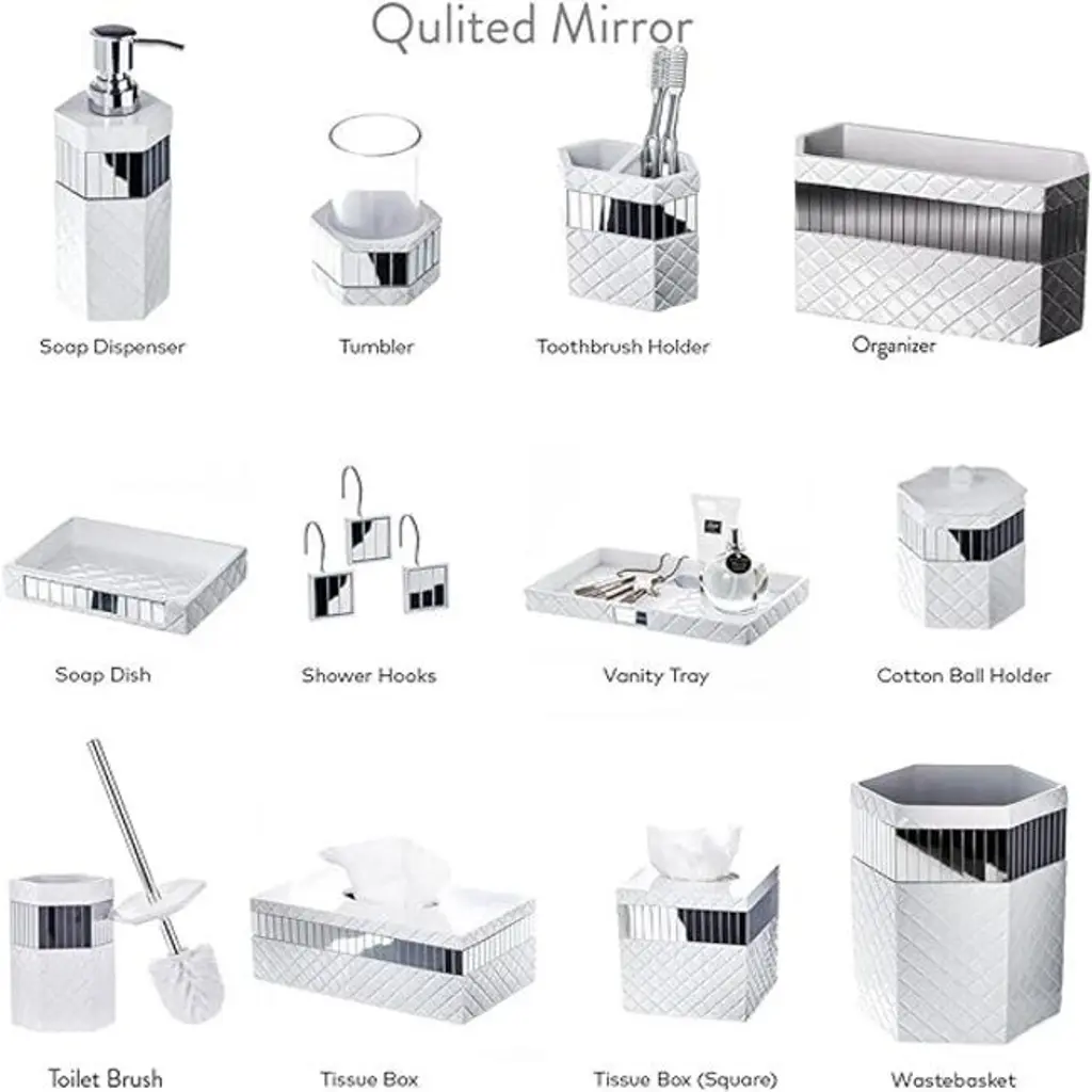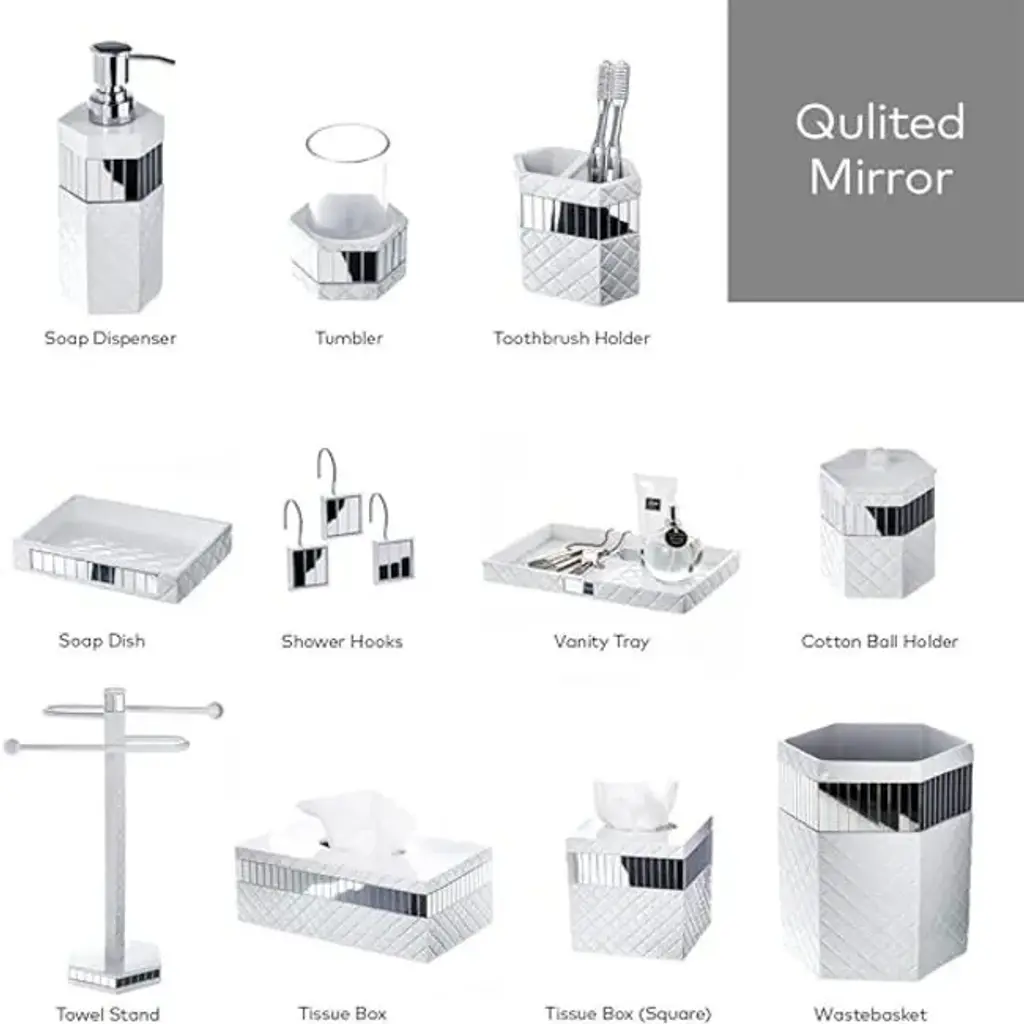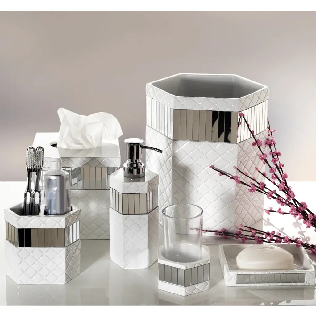 Quilted Mirror 6-Piece Bath Accessory Set - White
