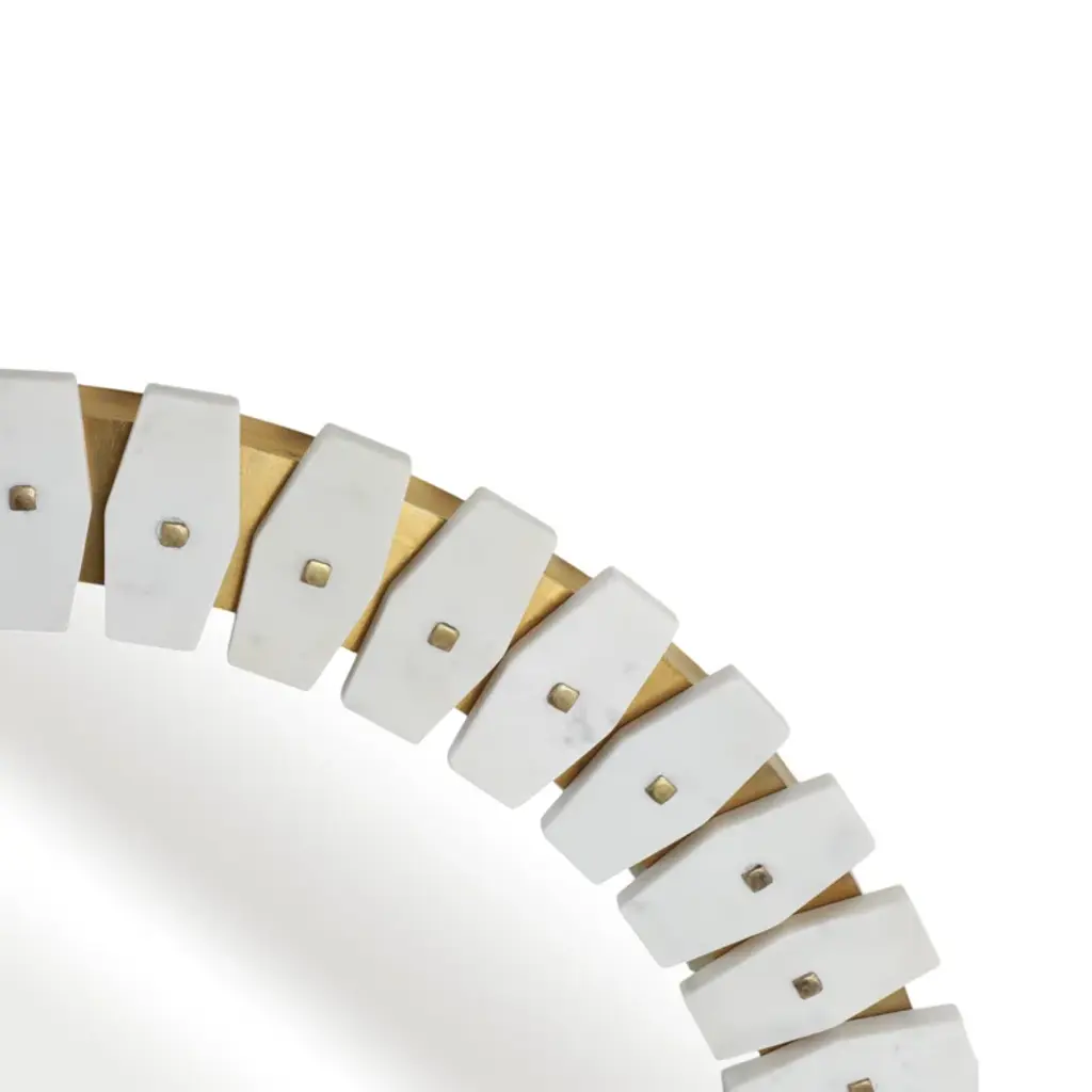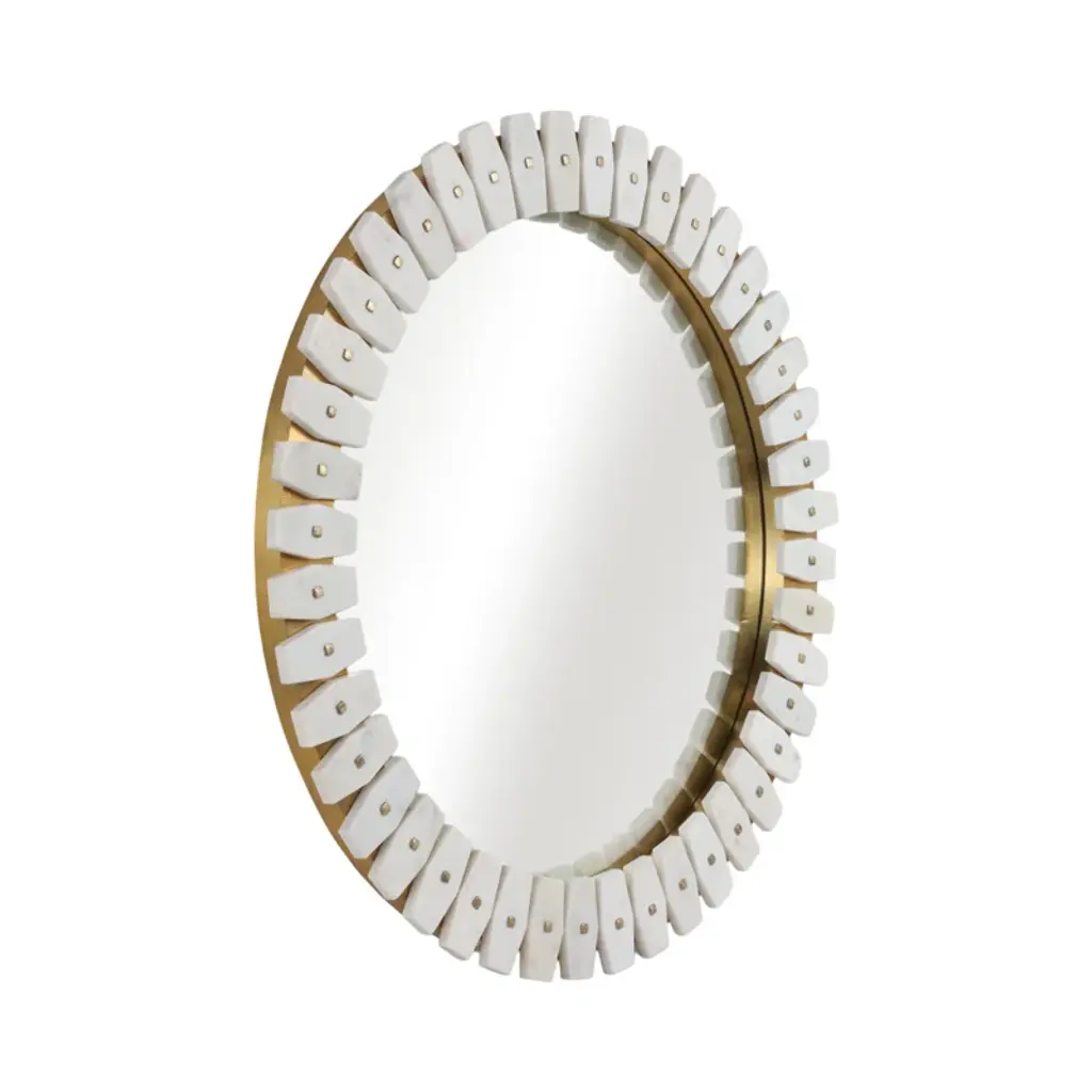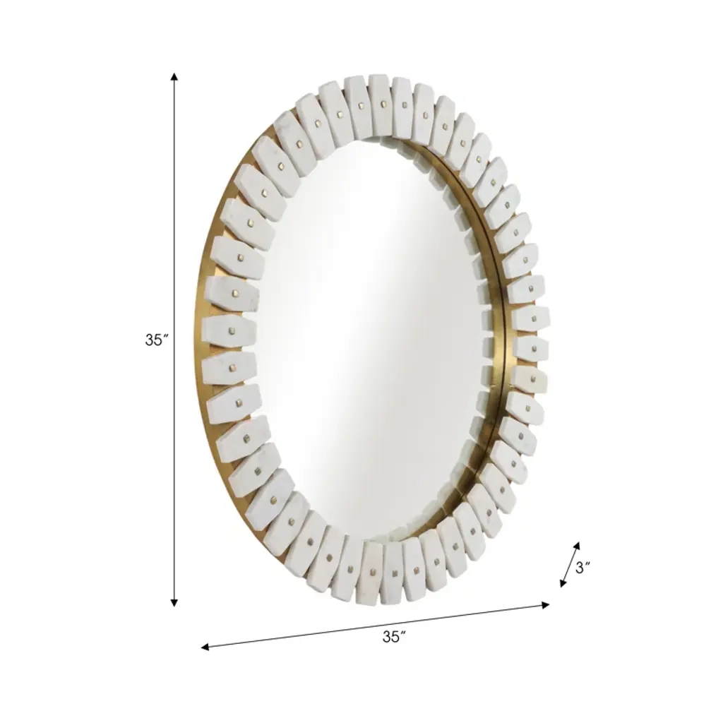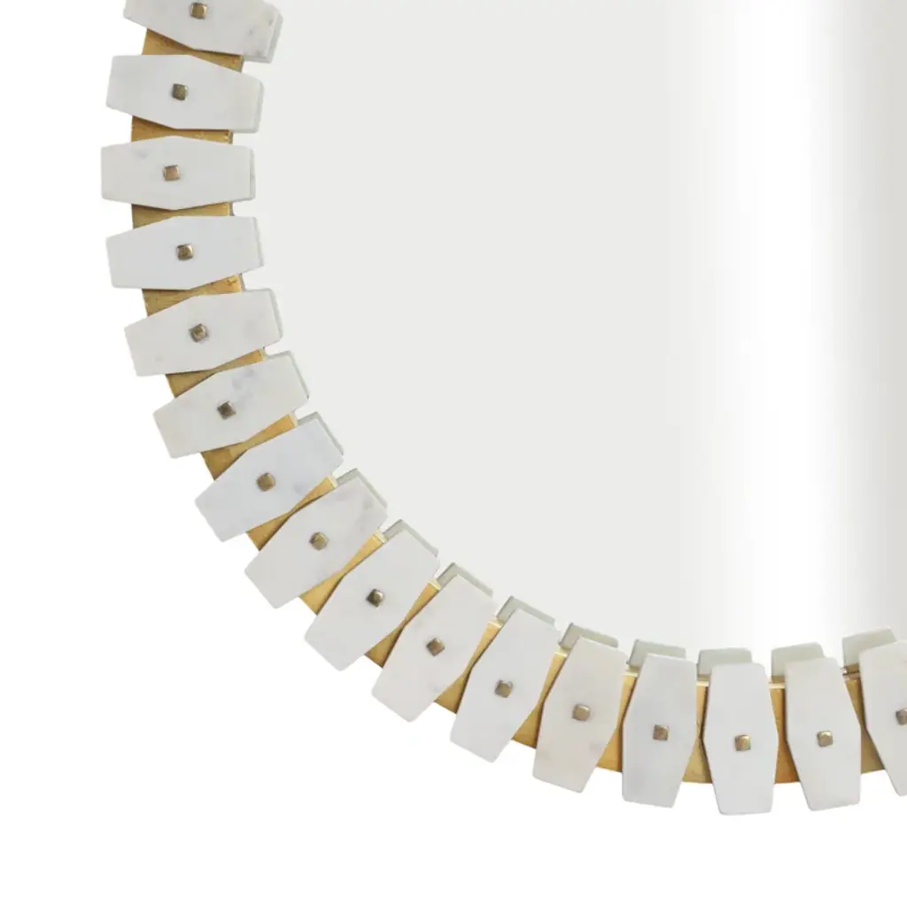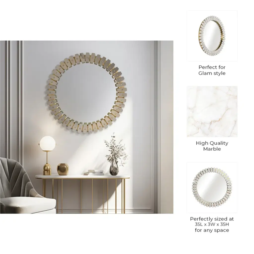 Quinnel Stone Glass Marble Round Wall Mirror With Decorative Framed Accents And Modern Design